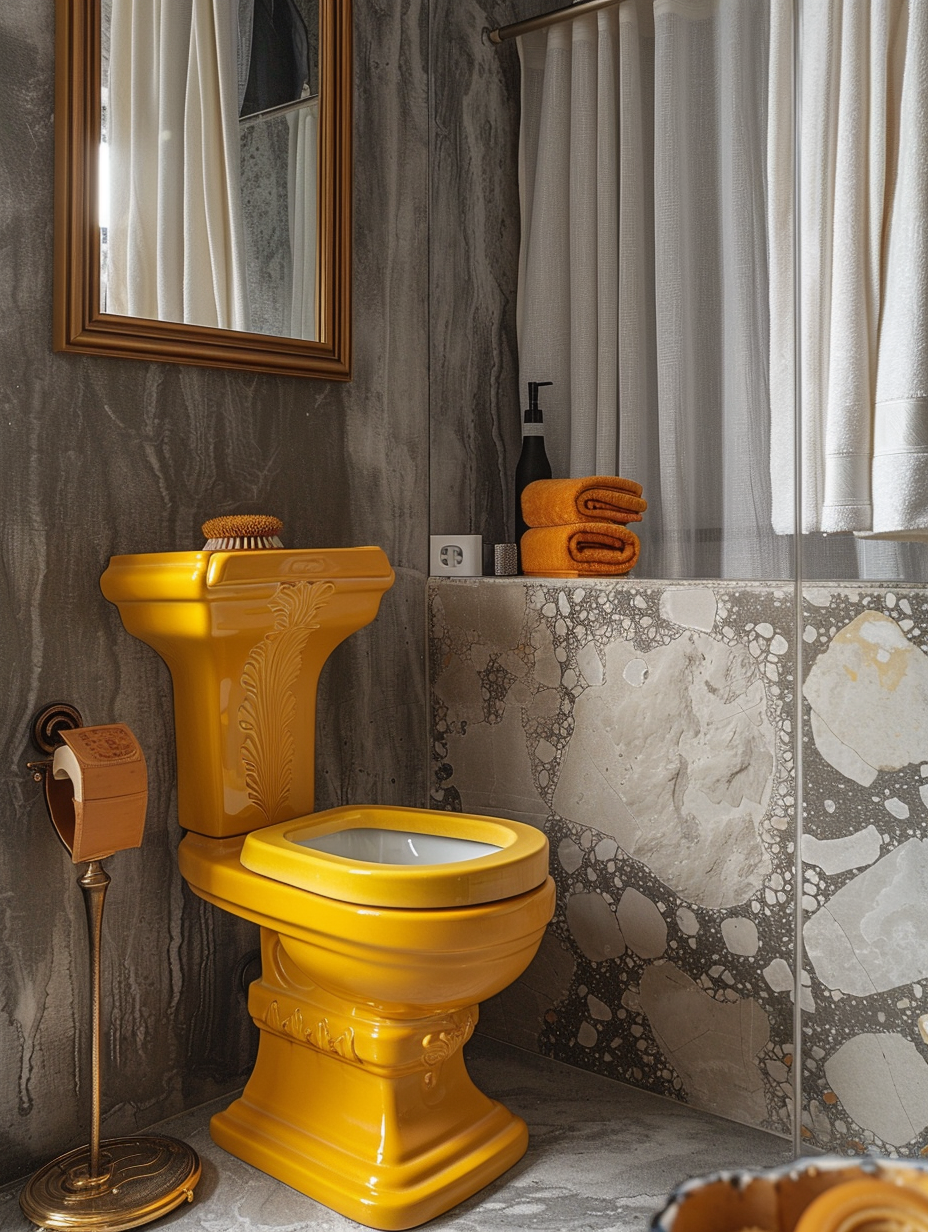 A yellow toilet seat can be an eye-catching detail and can refresh the design of your bathroom by adding an unexpected touch. Go for a design that goes well with everything else and choose a plain background, giving your seat the opportunity to draw attention. This unanticipated part is the Dan’s secret ingredient and makes your bathroom the most interesting.