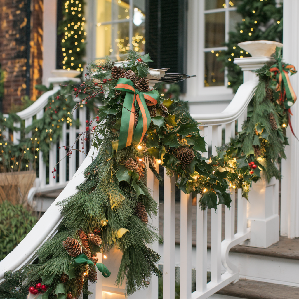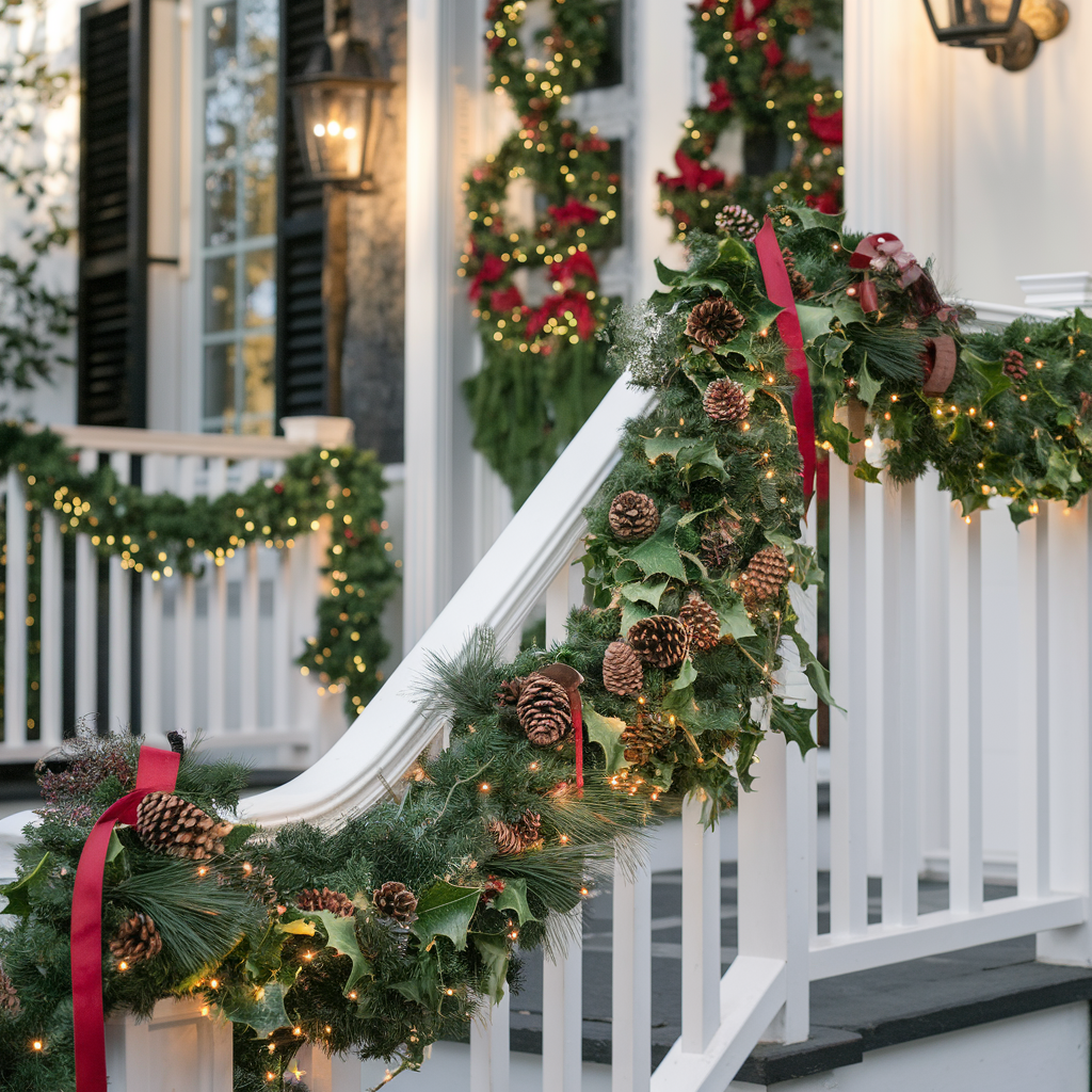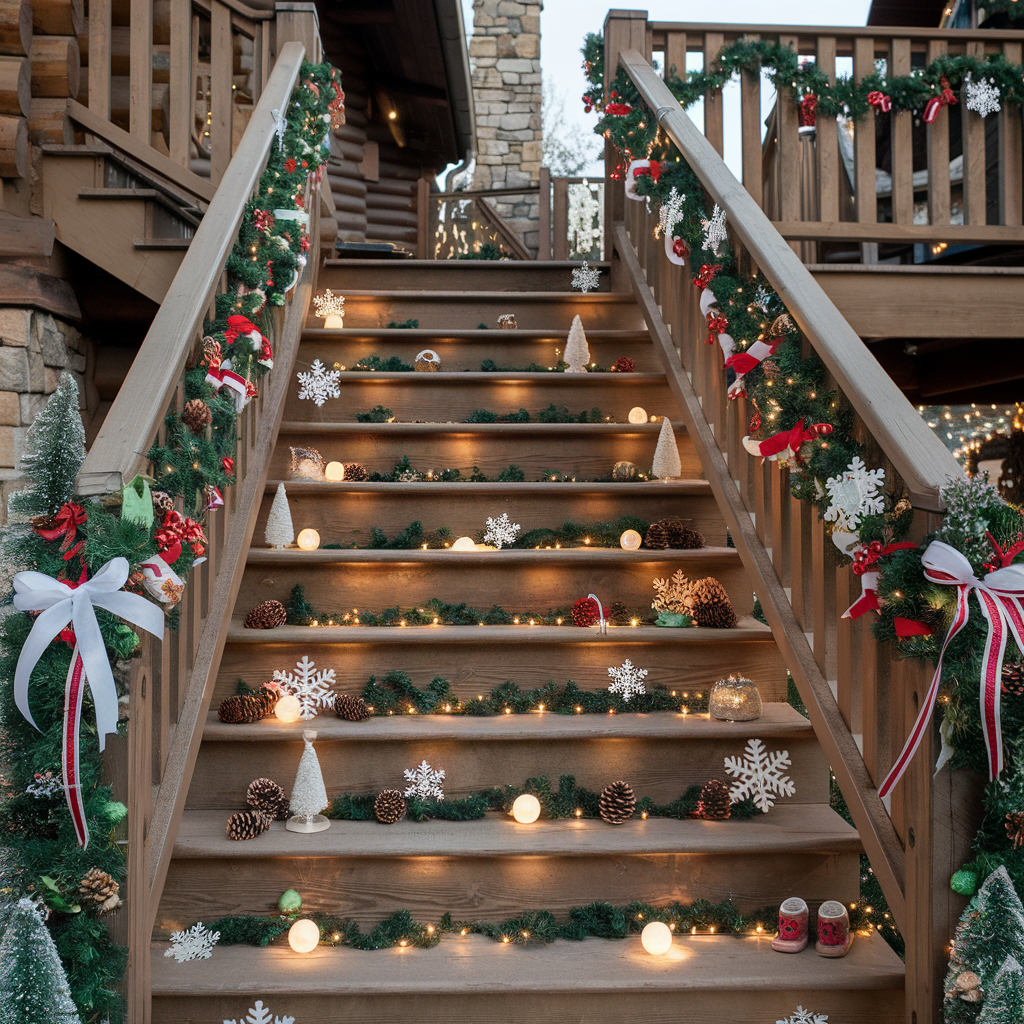 Make your balcony or patio a festive spot with outdoor Christmas decor. Hanging garlands and wreaths on railings and walls is the first step. Add Christmas lights to create a warm glow, and place lanterns or LED candles on tables and steps. A great idea is to integrate snowflakes, stockings, or even a small Christmas tree for a unique style. This simple and fun decoration idea will make your outdoor space cozy and inviting, perfect for enjoying the holiday season outdoors.