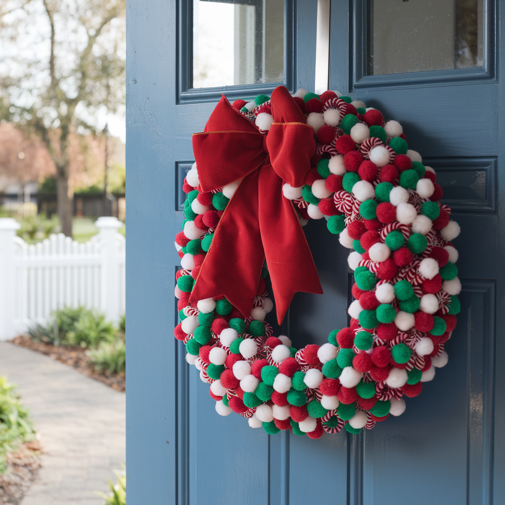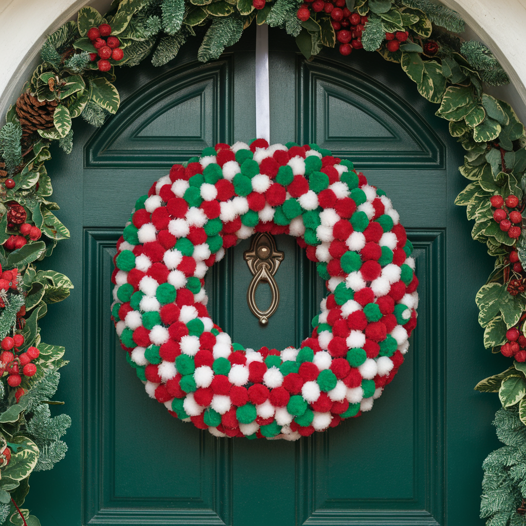 Pom-Pom Christmas Wreath for Outdoor Decor