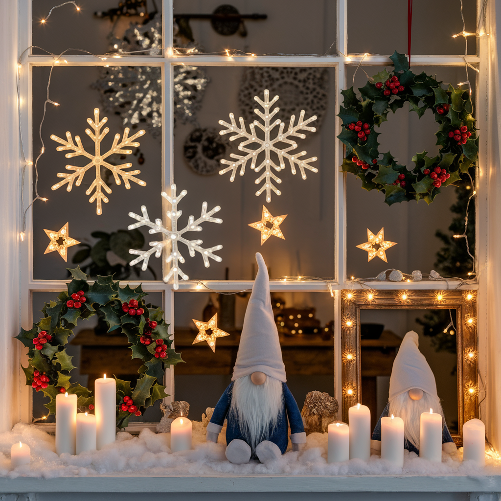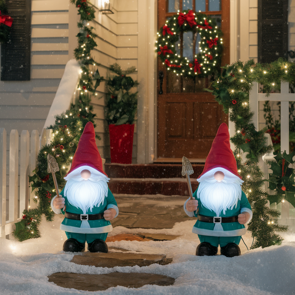 Bring some humor to your main entry with LED gnomes standing sentry over the lane. These bright faces will make your house cheerful with their dapper beards and red Christmas hats. Place them on both sides of your front door, among the Christmas lights and holly wreaths. Their tenderness not only amplifies the holiday spirit but also generates a playful and friendly atmosphere. This homemade and creative decoration is just perfect for giving a warm and natural look to your festive decorations.