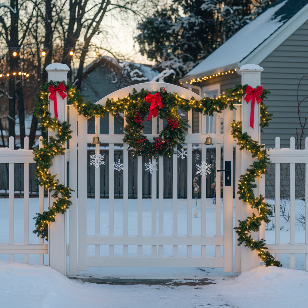 Give your home’s exterior a wonderful touch with Christmas lights and other decorations for fences and gates. Wind garland around fence posts and trail them along the top rail. Incorporate wreaths, ribbons, and LED lights for an additional touch. Besides this, you can also add snowflakes or bells to the gate for the prancing entrance. This fascinating and stunning idea of decoration will make your fences and gates a striking feature that complements the overall beauty of your outdoor holiday display.
