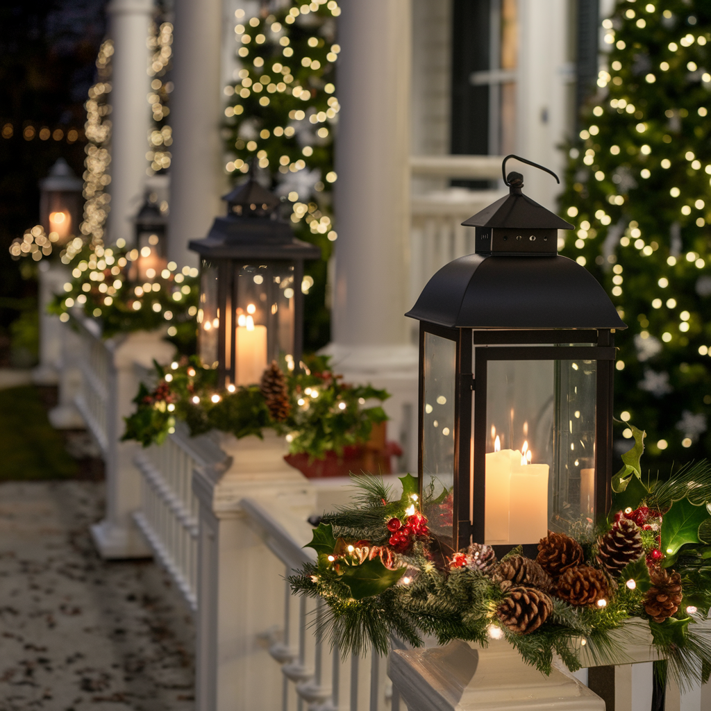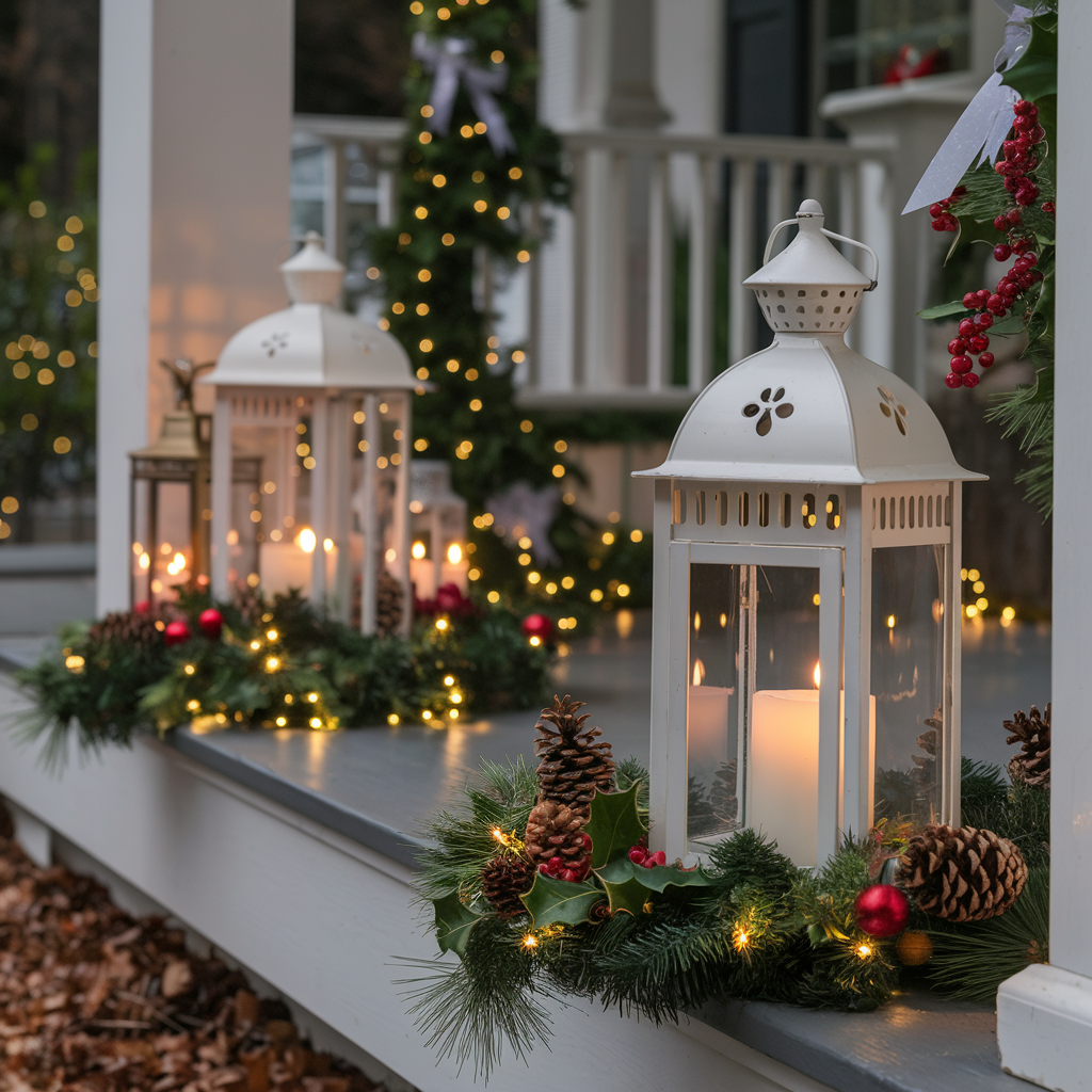 Christmas lanterns during the festive season are an awesome means to create warmth and light upon the outside parts of your house. Opt for lanterns in vintage designs and the same bright and festive Christmas lights. With them, you can either put them along the pathways or on the porches, or hang them from the trees, and in this way, you get the lovely air and glowing place. You may also want to fill the lanterns with rustic materials such as pine cones and holly, besides or perhaps use wrapped ribbons to hang them on lantern handles. This simple yet beautiful decoration is a good way to add a bit of charm to your outdoor Christmas decor.