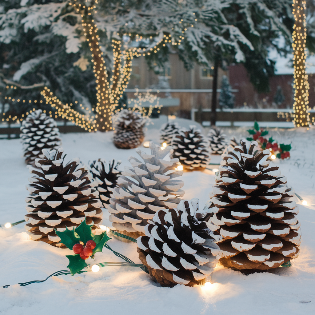 The giant pine cones that are used as your outdoor pressant decorations are an intriguing and natural element that you can use to bring the magic of Christmas to your yard. Use these enormous pine cones to define the areas around your plants, walkways, or the base of trees. These can even be painted in white or gold for an elegant, timeless look. Along with them, place LED lights to create a uniform and visually wonderful display.