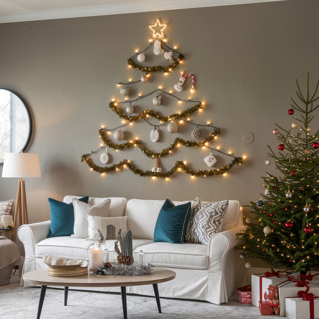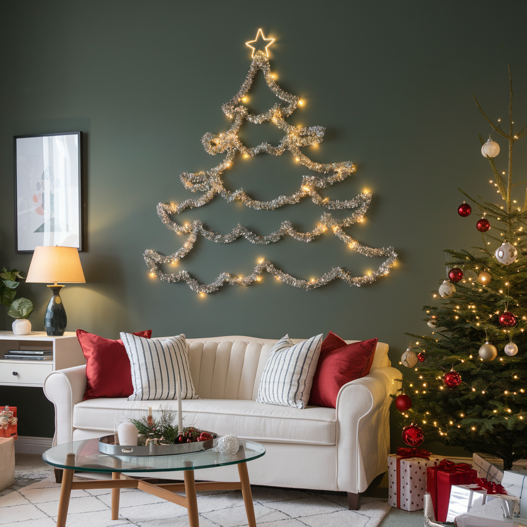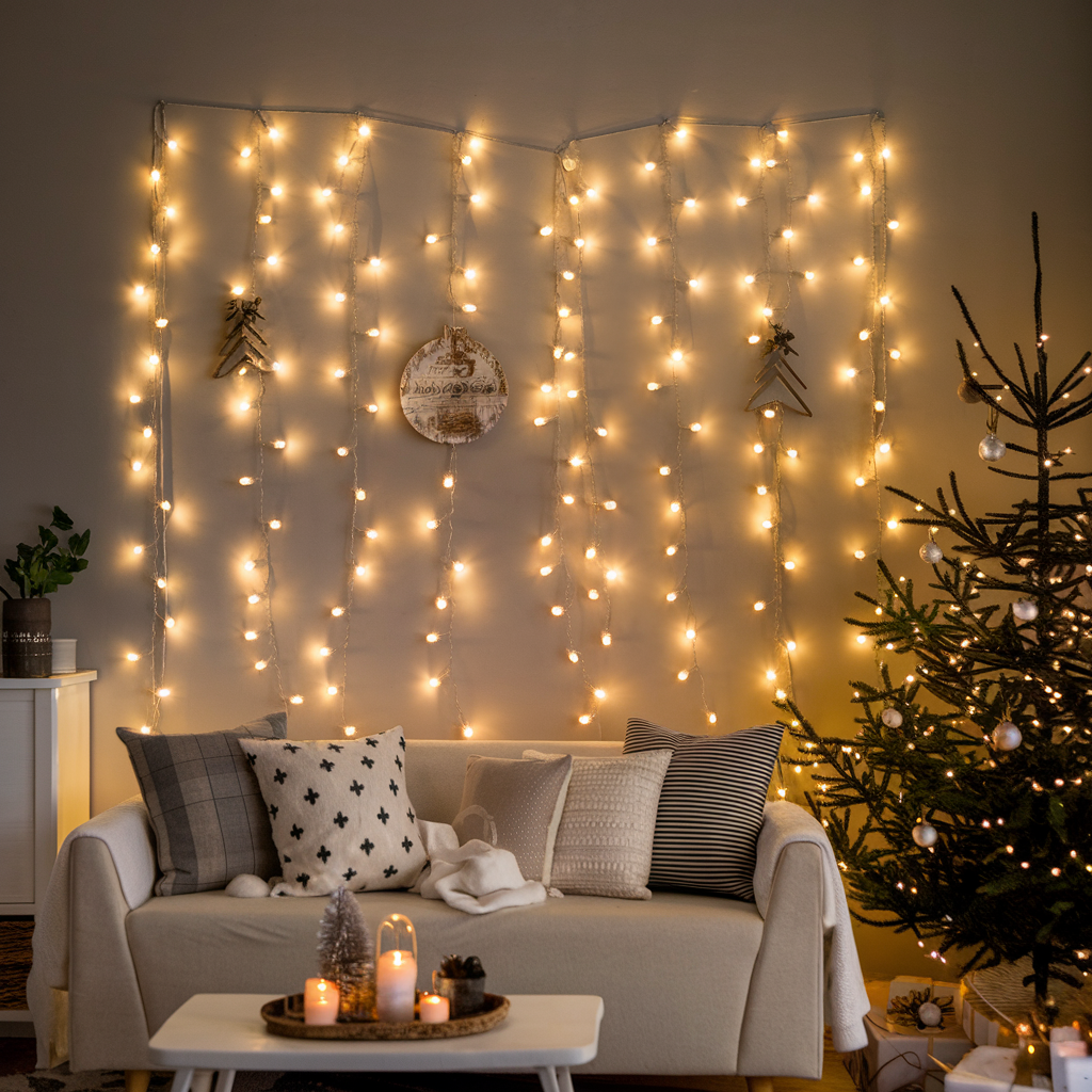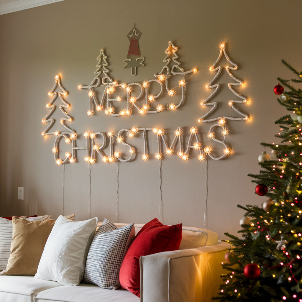 Festive Wall Designs with Christmas String Lights