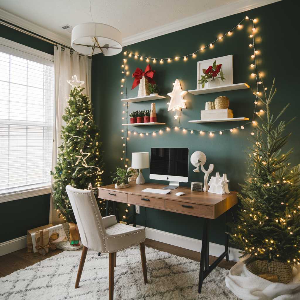 Christmas Lights on Walls for a Festive Home Office