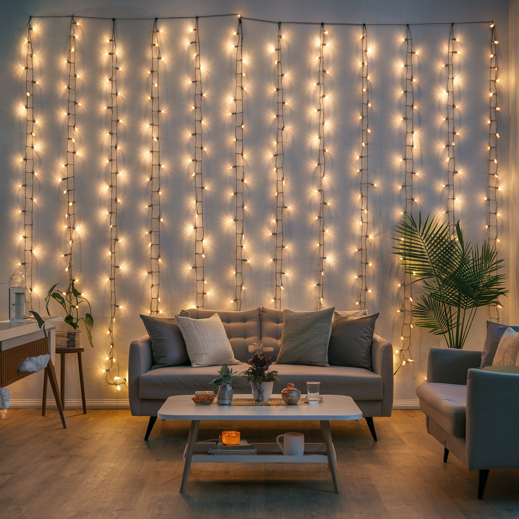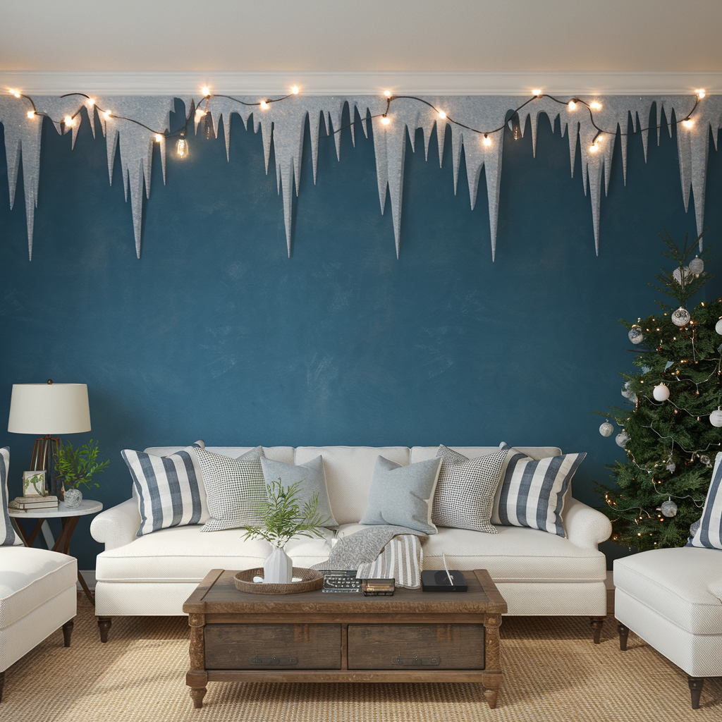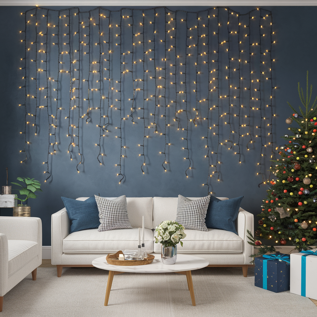 Decorating Living Room Walls with Christmas Icicle Lights