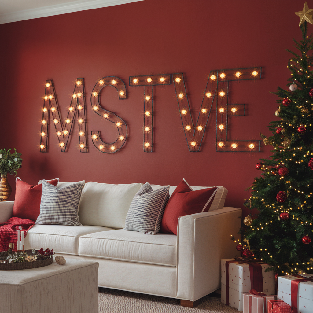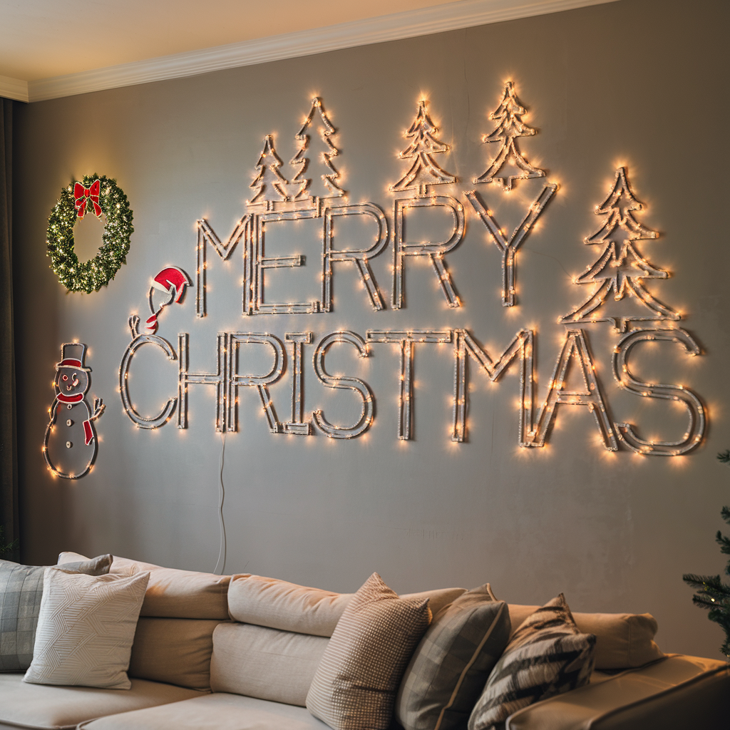 Designing a Festive Message on Walls with Christmas Lights