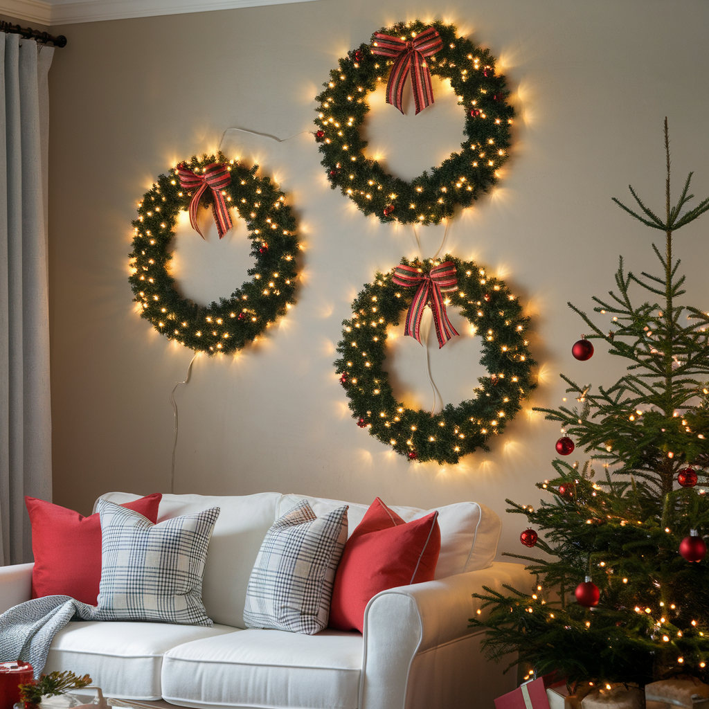 Christmas Lights in Wreath Shapes on Walls