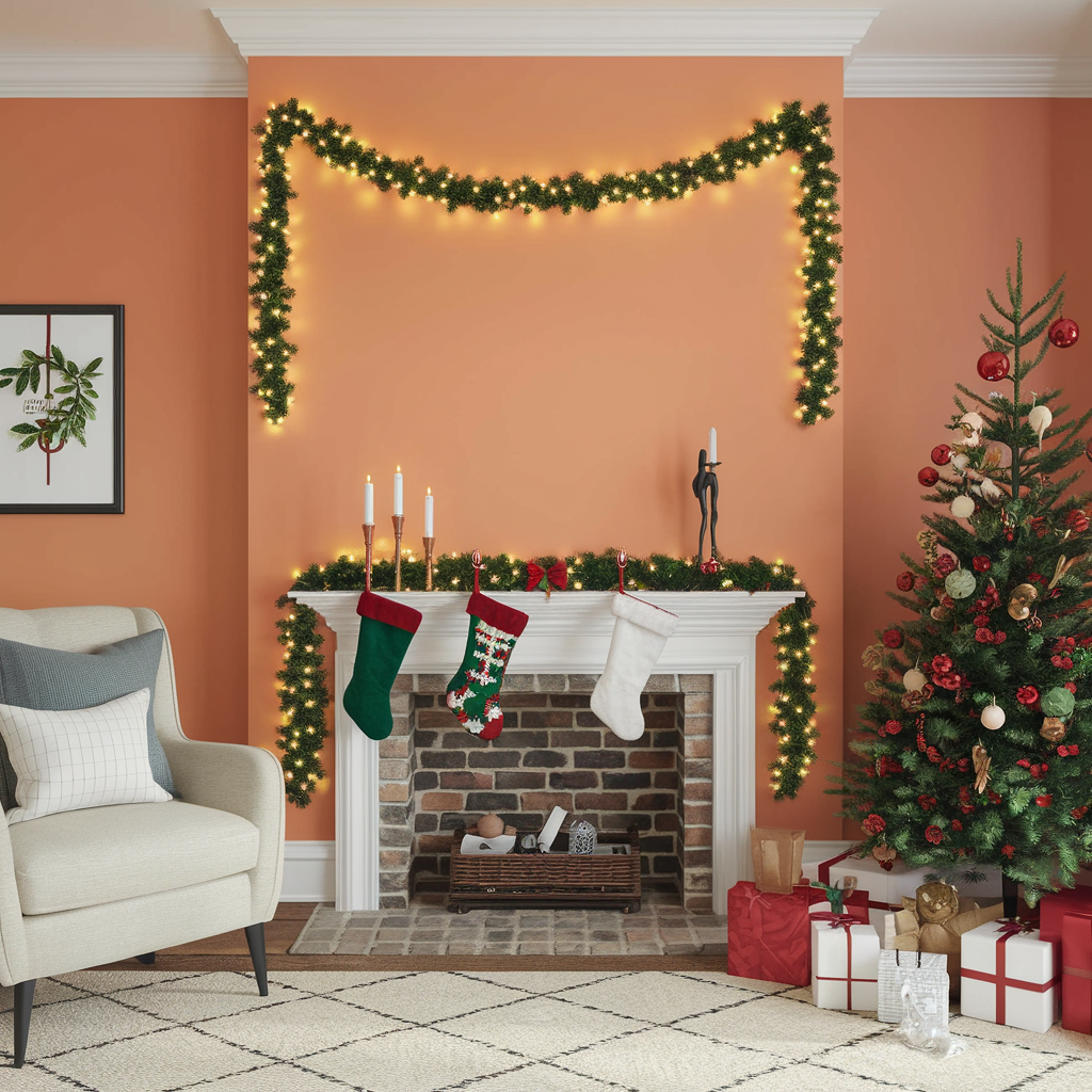 Add a fun and cozy atmosphere to your bedroom by decorating the walls with Christmas fairy lights. These delicate lights are ideal for evoking a warm, intimate feel, either by draping them around the headboard, hanging them in cascading patterns on the wall, or using them to frame a mirror. Fairy lights are especially powerful in bedrooms where their soft glow makes the environment a festive and relaxing one.