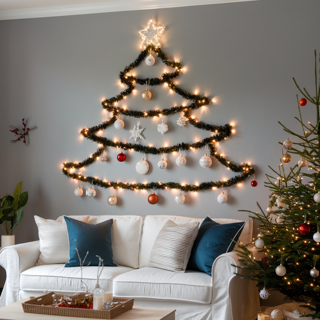 Christmas Lights in the Shape of a Christmas Tree on Walls