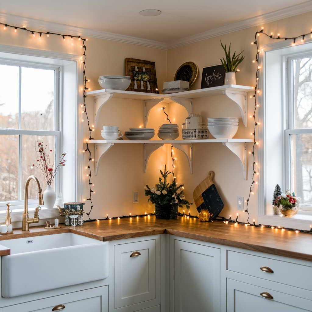 Brightening Kitchen Walls with Christmas String Lights