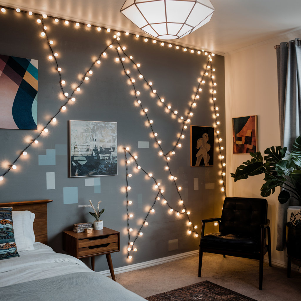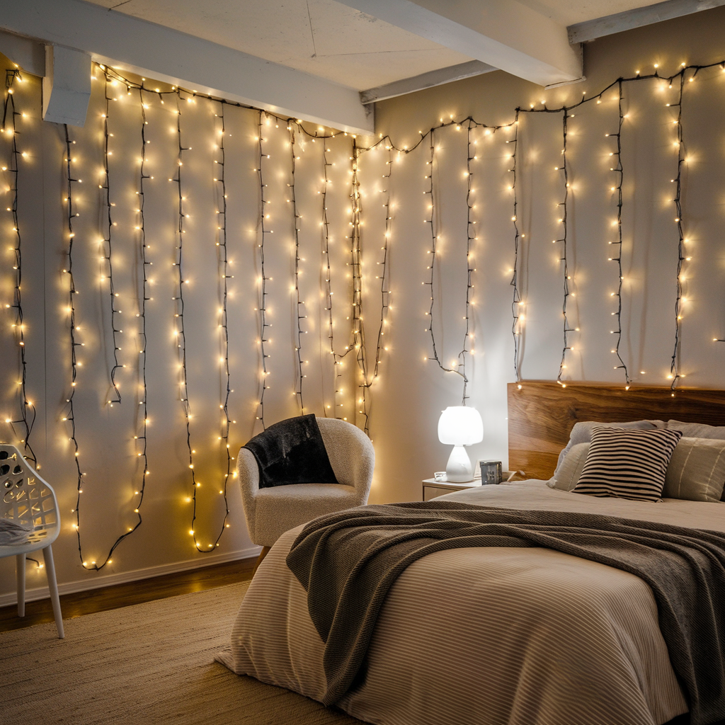 Lighting up Bedroom Walls with Christmas Lights