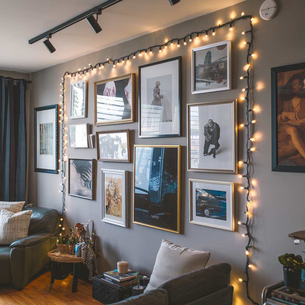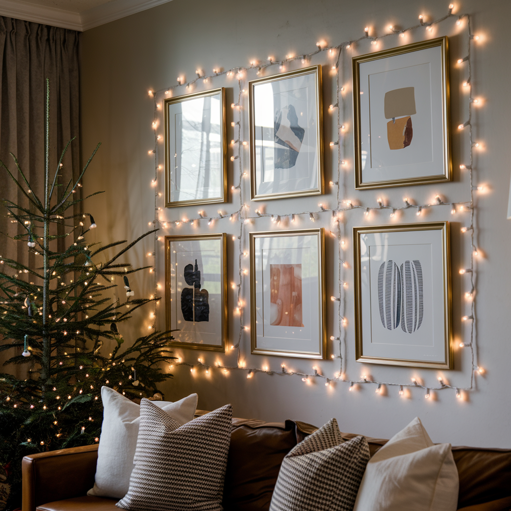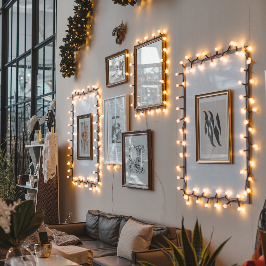 Christmas Lights for Accentuating Picture Frames on Walls