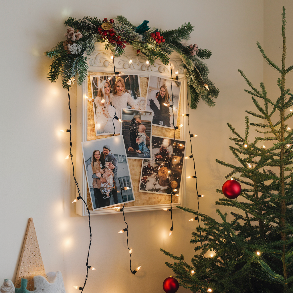 Saving the moments and adding a personal touch will make your holiday decor more beautiful and the best way to achieve this is by making a photo display with Christmas lights on walls. This concept is great for displaying family photos, holiday cards, or even special memories from past Christmases. The lights could be used to form frames around the photos or to hang them, providing a warm glow which will make the display both festive and sincere.