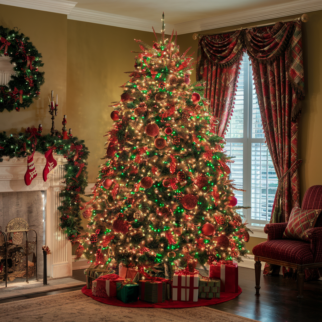 Christmas Tree Lights with a Timeless Red and Green Color Scheme