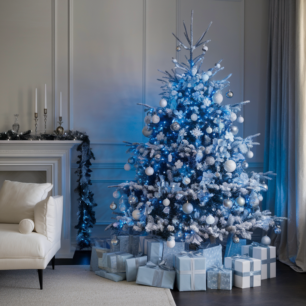 As a Christmas tree, ideas of blue gadgets together with white lights should be suggestions of Christmas tree ideas which include cool blue hues for a modernized and stress-free holiday look. This setup has blue lights as the main feature and silver and white ornaments to complete the winter-style elegant scenery. The cool colors are those who like to have an emit of elegance throughout the holiday.