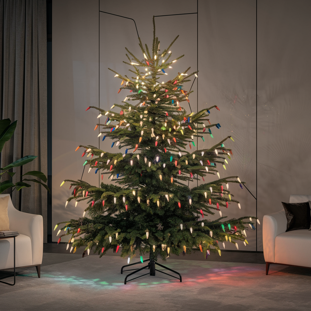 Enlarged C7 and C9 bulbs have a nostalgic and vibrant vibe to your Christmas tree. The oversized lights are a throw-back to traditional holiday decor, providing a vibrant and jubilant display. In collaboration with the well-known ornaments and tinsel, these, big light bulbs, are the ones that bring us retro trees which are entertaining and festive, those who are into the ordinary holiday atmosphere find the latter to be a perfect candidate.