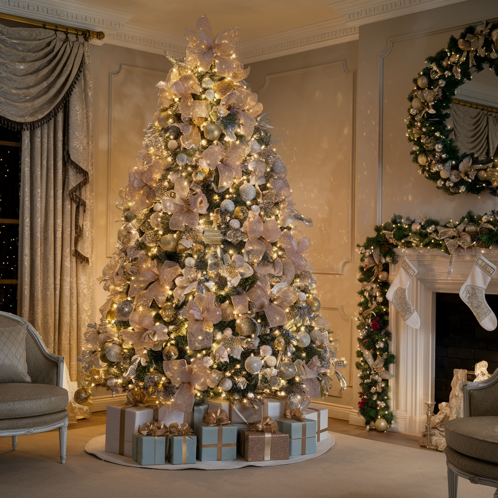 Elegant Gold and Silver Christmas Tree Lighting Ideas