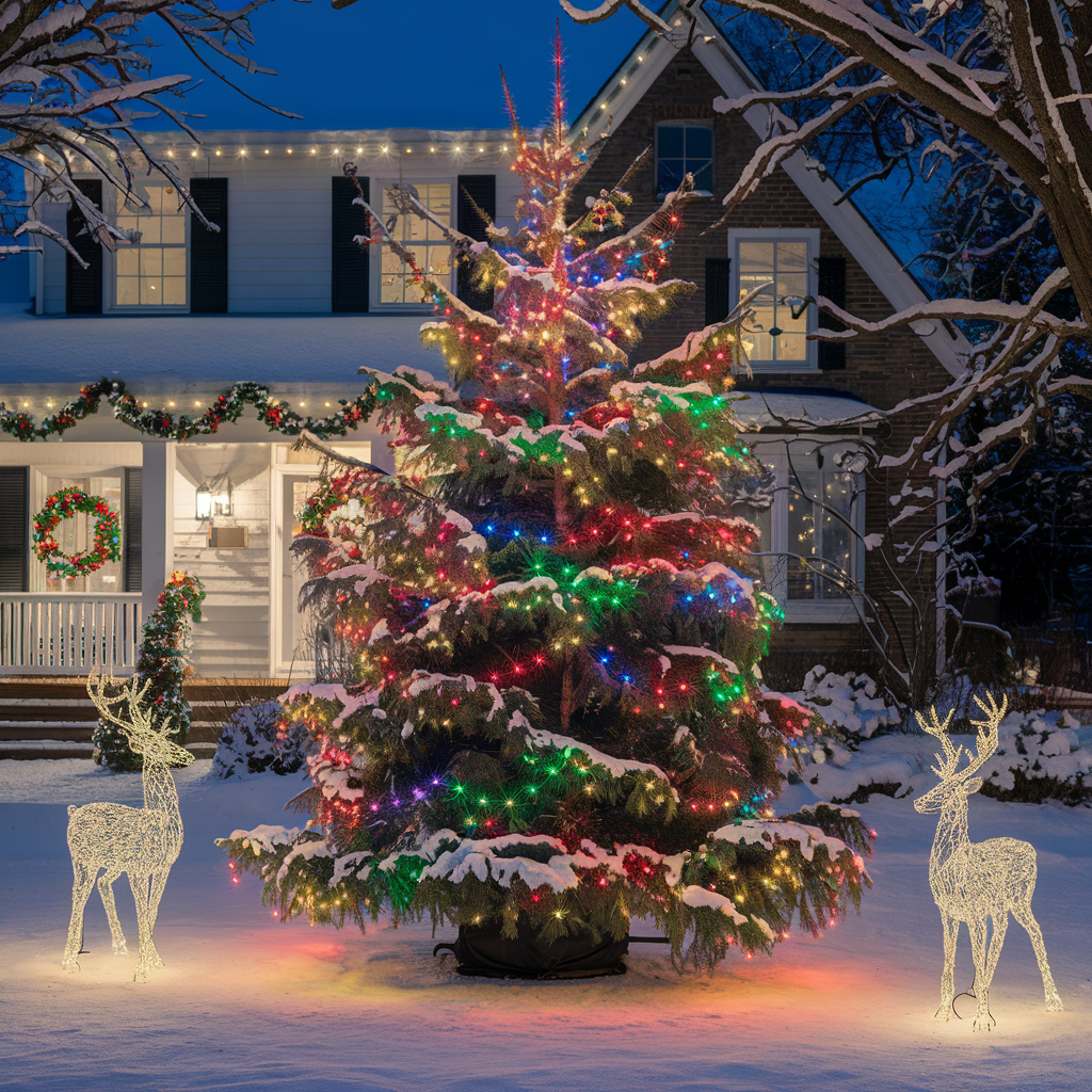 Outdoor Christmas Tree Light Ideas for the Front Yard