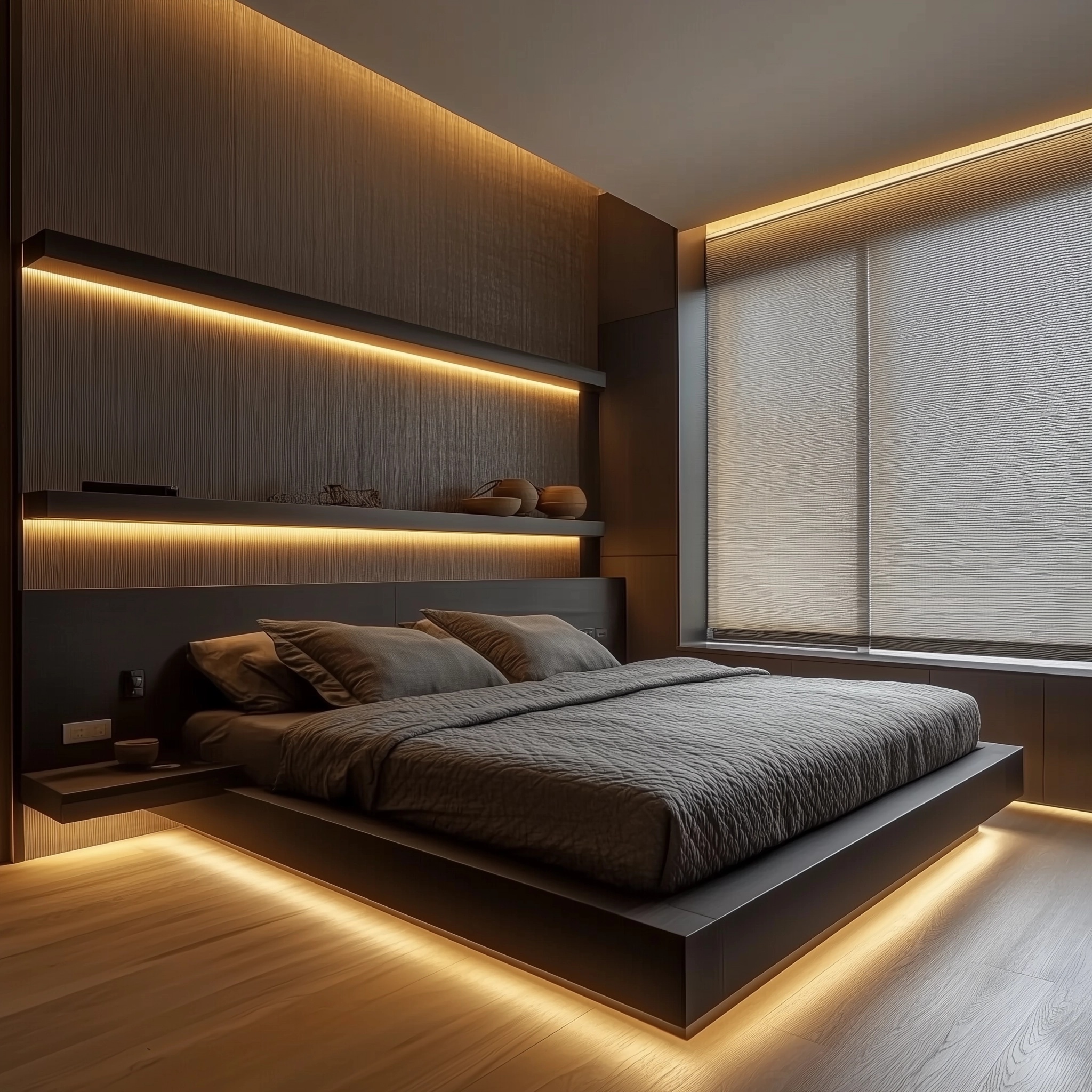 For a bedroom that stands out, one must think creatively to integrate the best technologies of modern and elegant design. Use hidden lighting that floats on shelves to provide a modern yet functional display area. Introduce technology to your home like automatic blinds and lighting to enable your house to have a contemporary look and function with flexibility. A platform bed with built-in storage can solve the problem of keeping the room messy and unattractive. A bold design like a statement wall is a necessary touch to fashion an interior that will add dimension to the room.