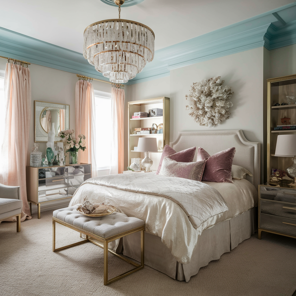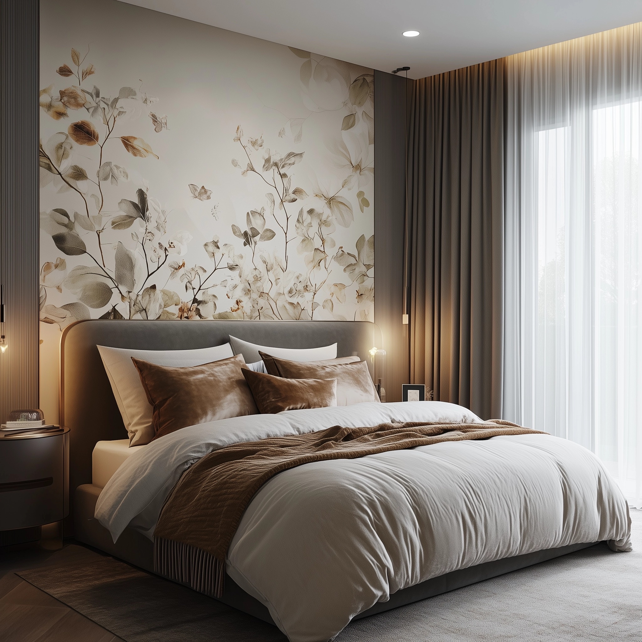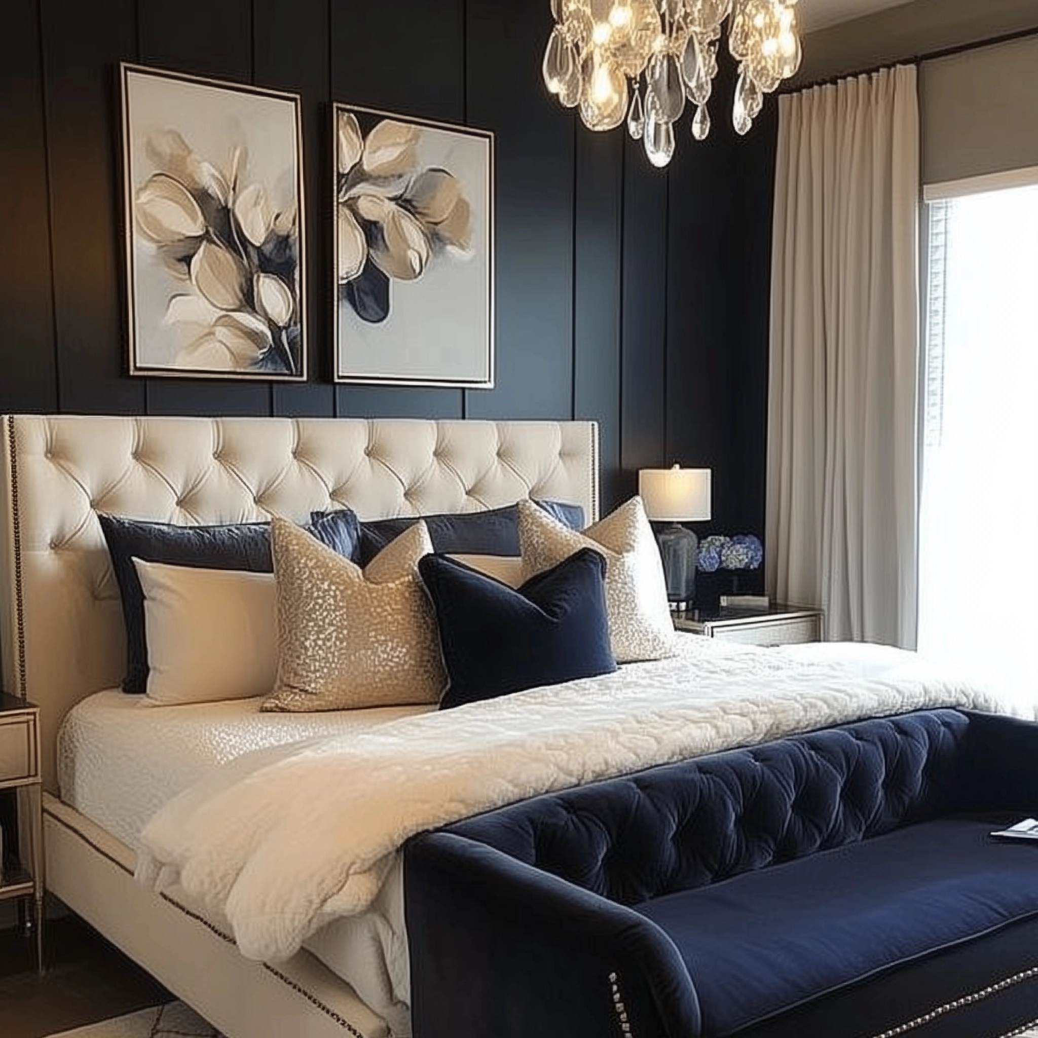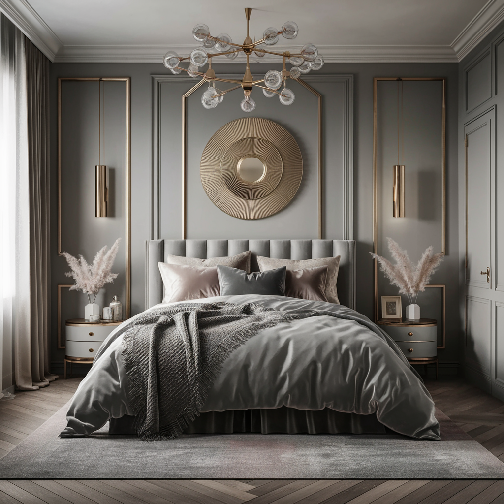 Specifically, the use of high-quality design elements is an art that combines the attractiveness of the space with the utility of its features. Begin with a vibrant color palette and perhaps think of including a deep, luscious shade like emerald green or midnight blue. Bring in luxury artistries, for example, a velvet adorned bed, brass or chrome trimmings, and glossy wooden furniture. Let’s try to think in terms of statement like a designer chandelier or a pair of modern pendant lights for the lightings.