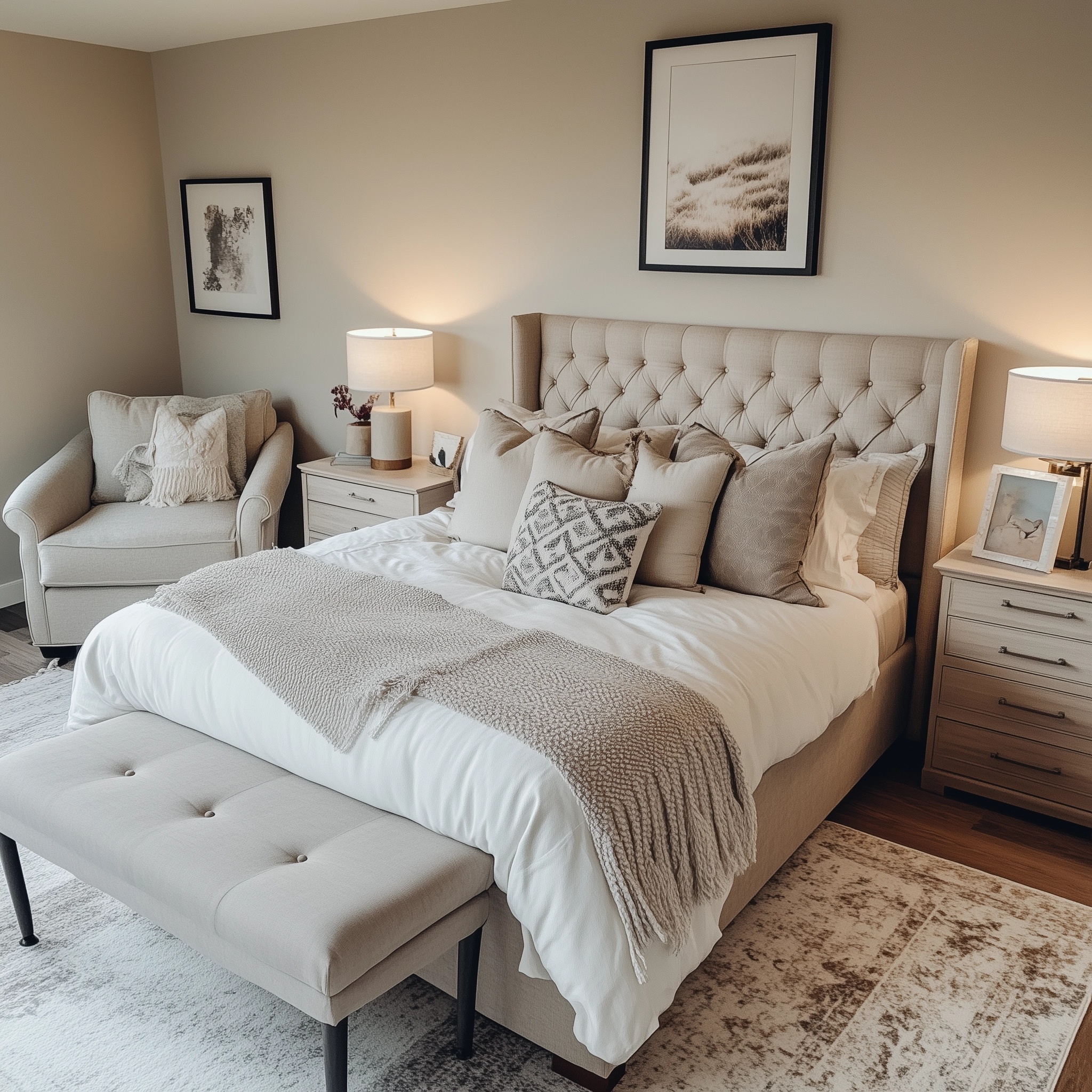 Looking seriously for a room that represents both status and style means that a deliberate choice of materials, colors, and finishes are required. The starting point is with a neutral tone spectrum–think white, beige, or soft gray–without which the room will most likely not bring in a calming atmosphere. Some of the great materials to be incorporated are wool, silk, and marble. They may be found in the furniture, bedding, or even as accessories. Meanwhile, an extra soft rug, a nice sleeping cushioning, and the big plush headboard will give it that sumptuous look you can’t resist.