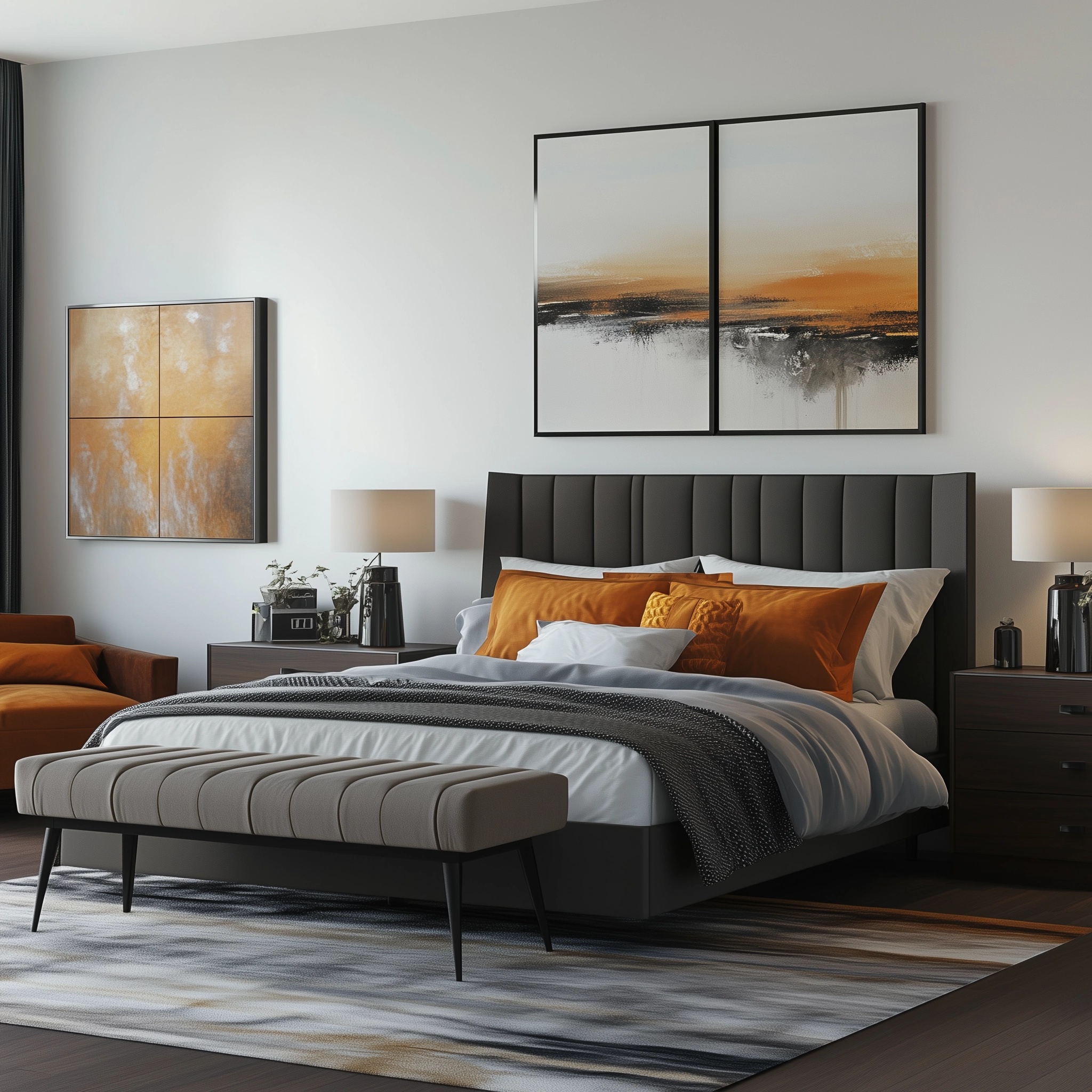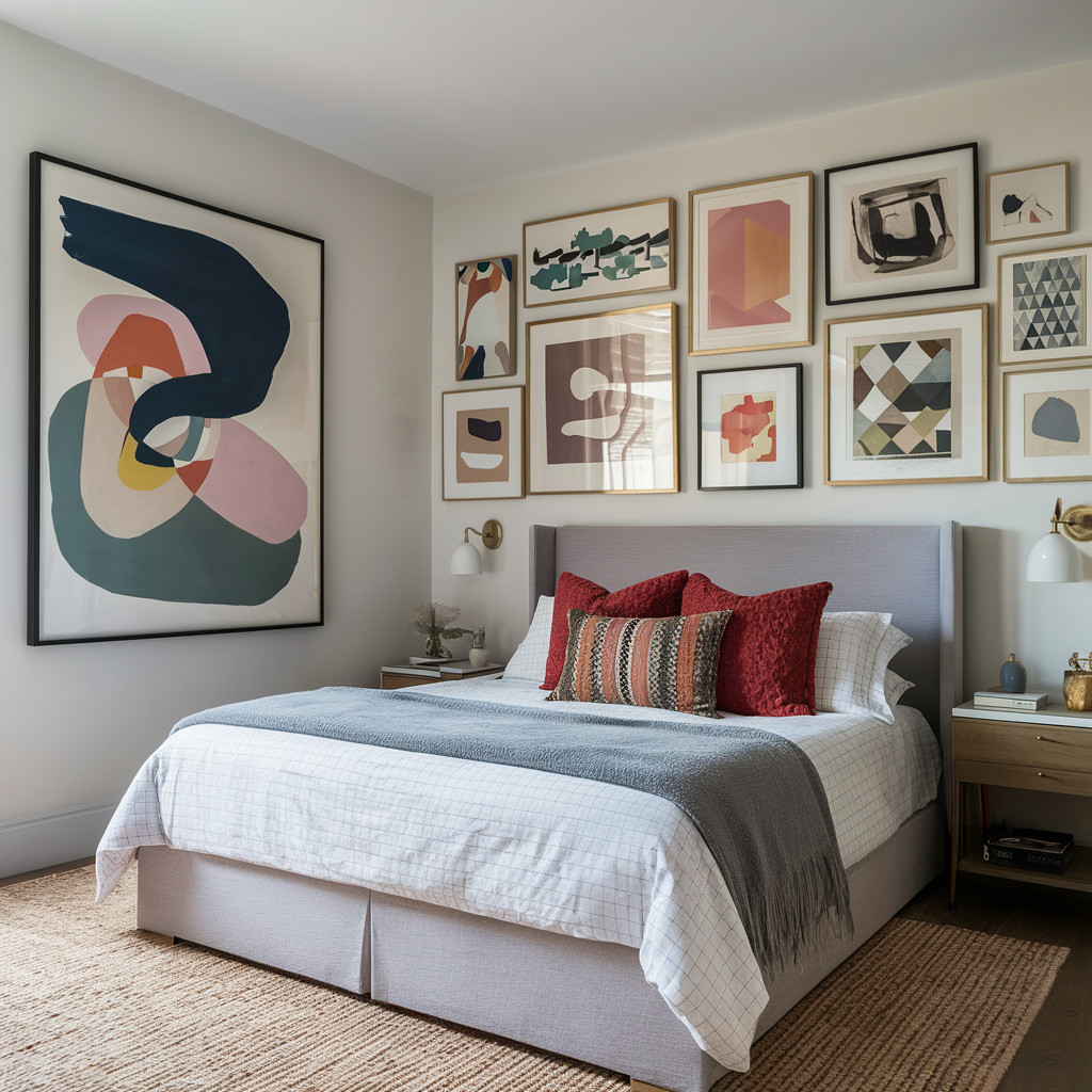 The visual appearance of the wall is one of the most effective tools when it comes to personalizing or enhancing the design of a bedroom. The artwork you choose to display should perfectly blend in with the color scheme and general theme of the space. The use of large, abstract art pieces becomes the best option to give a modern touch, whereas a collection of smaller, framed artworks can be used to make a gallery wall whole.