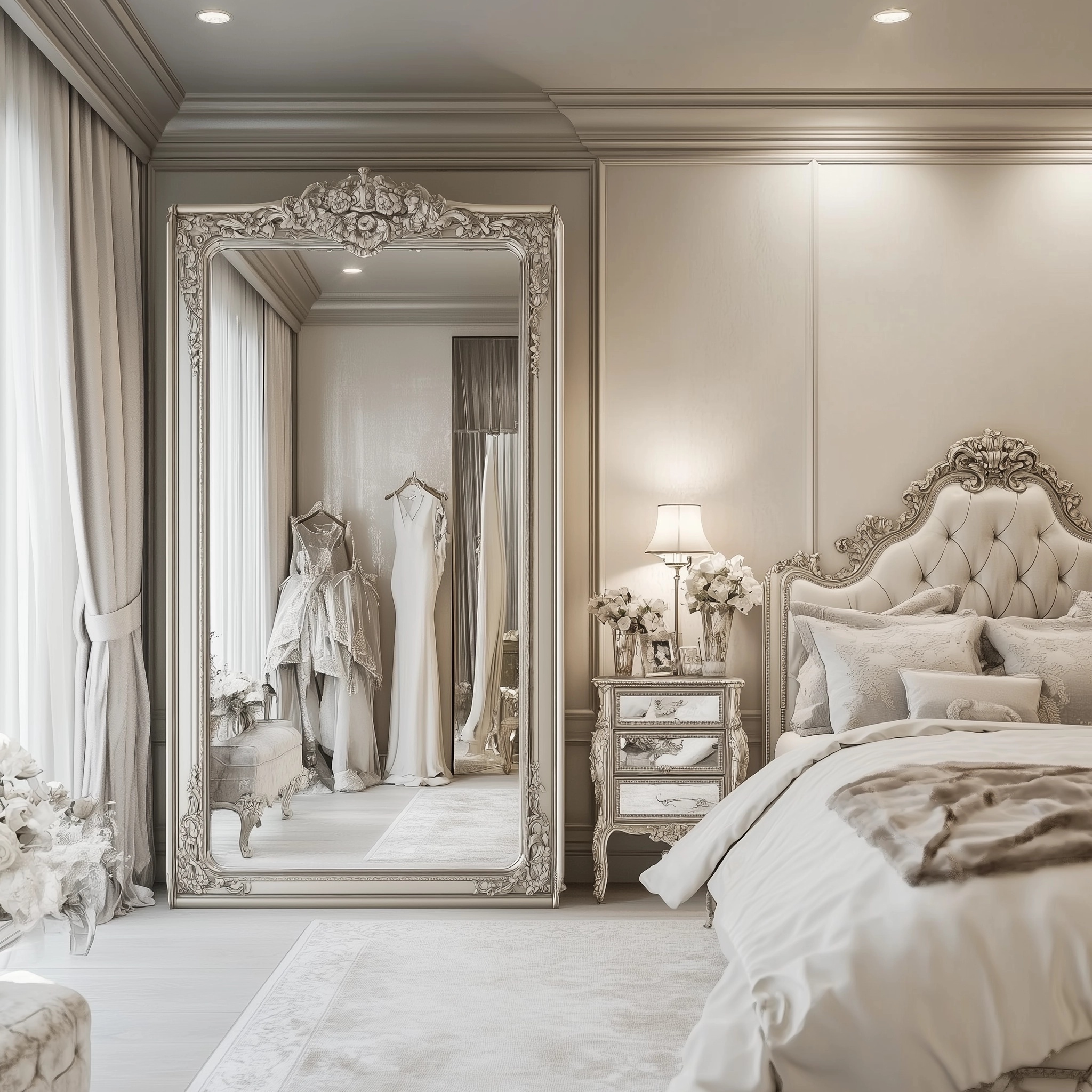 Mirrors are phenomenal partners in the modification of the beauty and sleekness of a room’s interior. Mirrors designed in big, bold styles are the perfect way to open up the space and to illuminate. Practical placement of a full-length mirror over the wardrobe will prevent the need to travel back and forth to check your look, or you can incorporate a decorative mirror over the dresser to make the most of the natural light and create the illusion of deeper space. You can also add some subtle bling to your room with mirrors on your bedroom furniture, such as a nightstand or vanity.