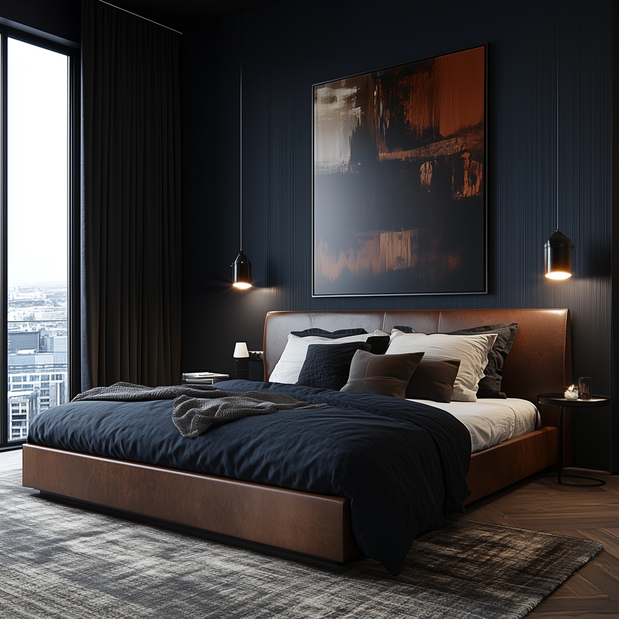 In order to create a stylish bedroom design for men, you need to consider the right mix of strength, comfort, and minimalism. Choosing earthy dark colors for instance, deep, navy, charcoal, and dark green, consider these as they emanate masculinity from wardrobe pieces. Stick to modern furniture pieces, for example, a bed that is low to the ground and sleek and finished with a leather headboard. Add natural textures such as a wool rug or a linen throw rug to integrate warmth and fascination.