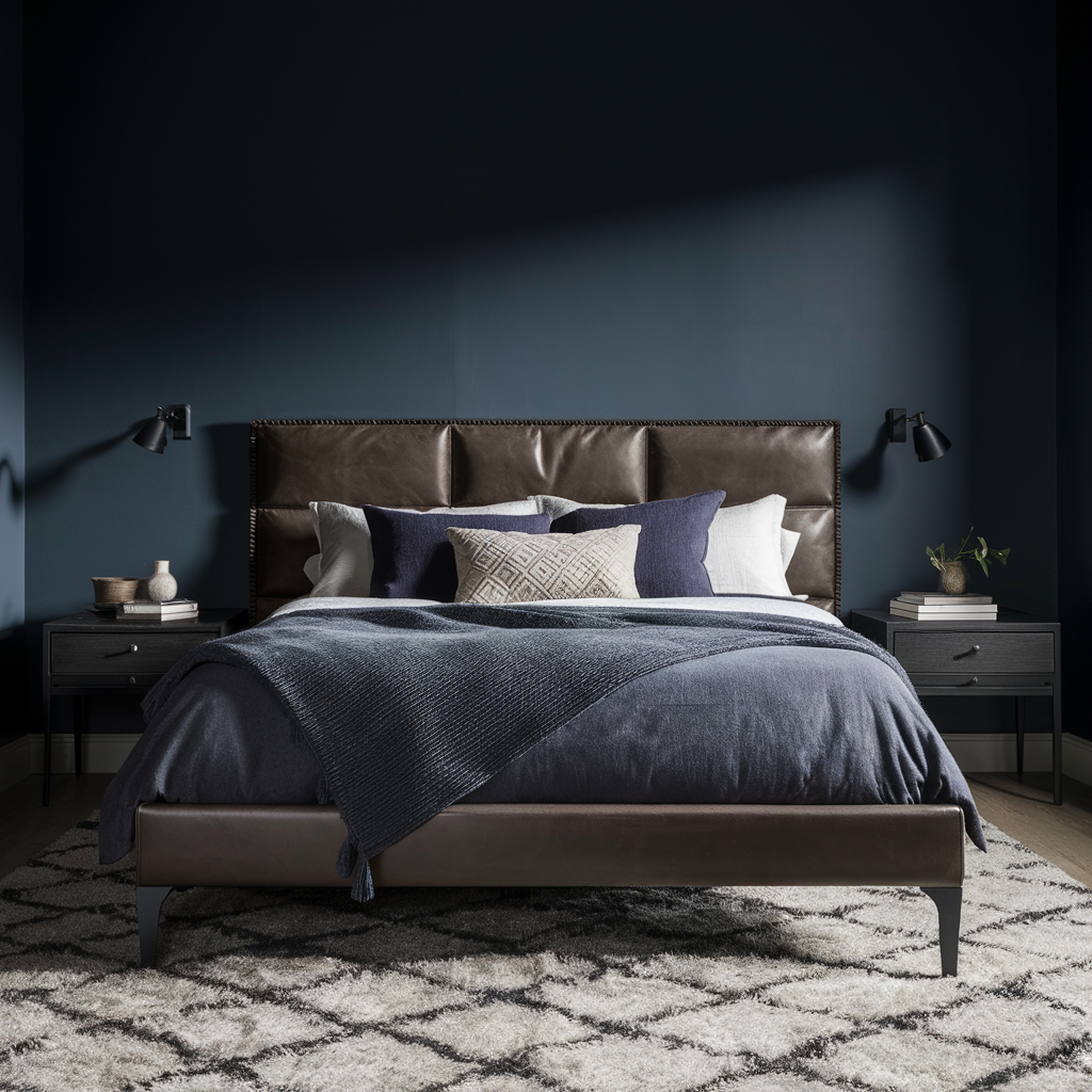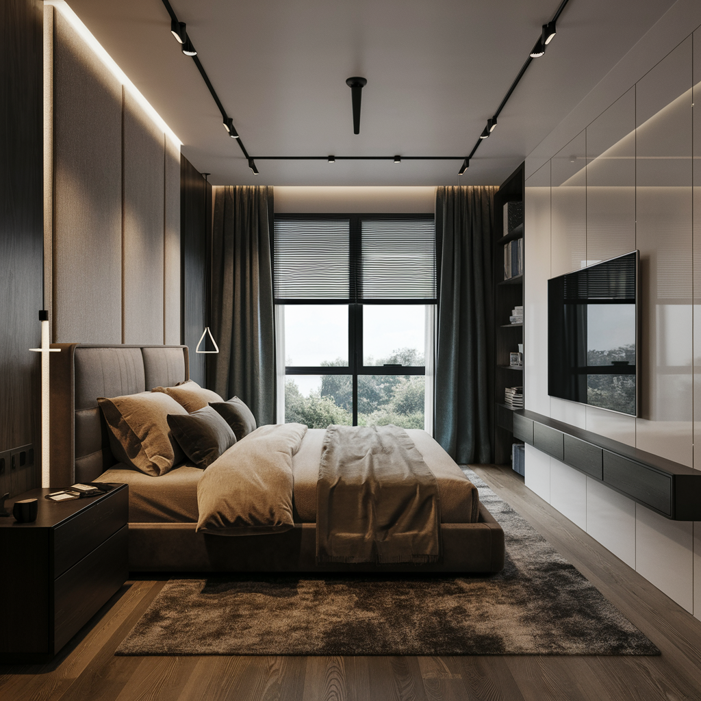 In the case of men’s bedroom design, the focus is on functionality, comfort, and subtle sophistication. A color palette that is mostly made up of dark, rich colors, such as navy, charcoal, or forest green which turns the space to be nature-derived masculinity and luxury. The focal point could be the bed, maybe with a leather or upholstered headboard, flanked with modern yet minimalist bedside tables. Introducing a neutral toned, soft area rug can alternatively achieve the same effect and also guarantee comfort. You may also want to include a fashionable armchair or a beautiful bench, which can be put at the end of the bed for extra comfort.