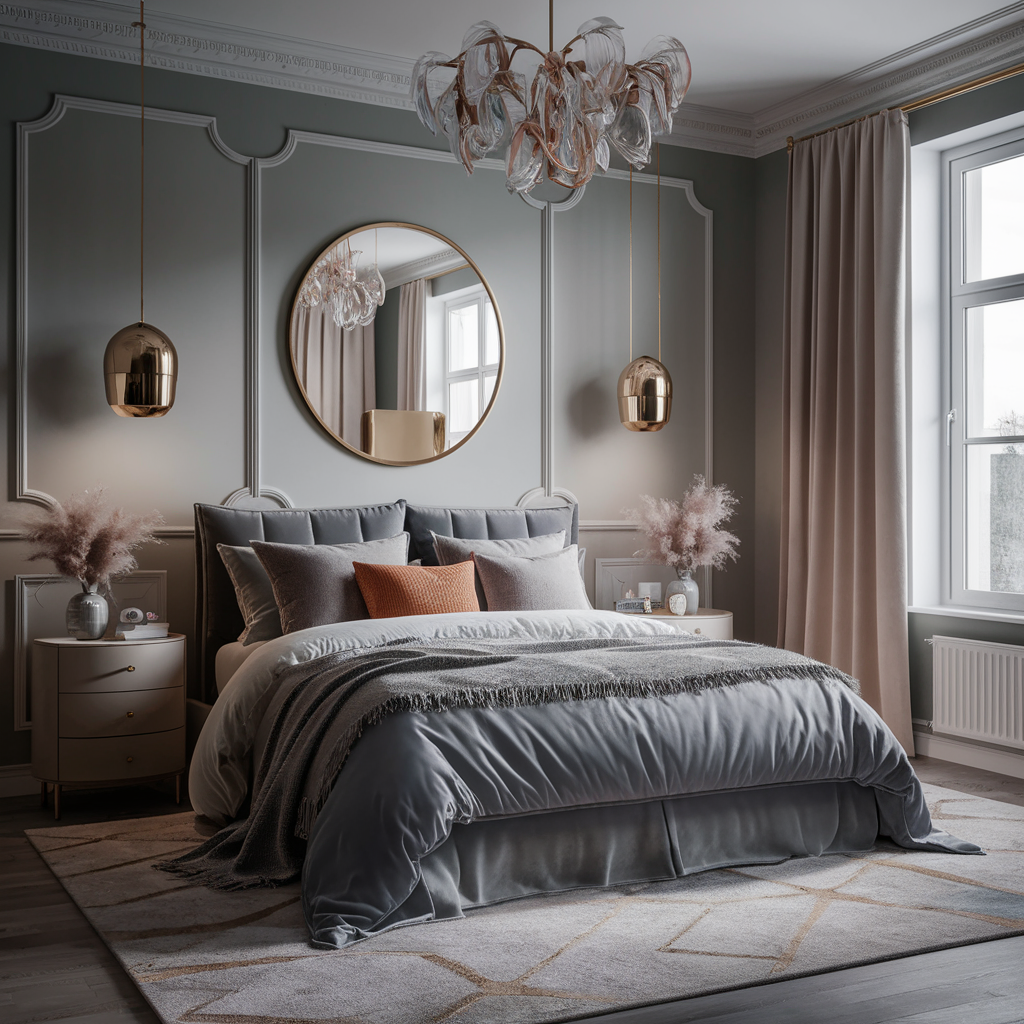 Boost the chic quotient of your bedroom design by adding an extra touch of luxury. Starting with the most luxurious, the best luxury of all—imitating Egyptian cotton or silk. Add the main elements such as a velvet headboard and marble-top nightstand respectively. Cobblestone pony skin or some vibrant sizes of decorations may bring more dimension and depth. The possibility is that you can enchant the room with a chandelier that will be the final touch of the project. Inclusion of objects like crystal vases, gold picture frames, and luxury scented candles can enormously intensify the room’s atmosphere, transforming the space into a cozy, elegant retreat.