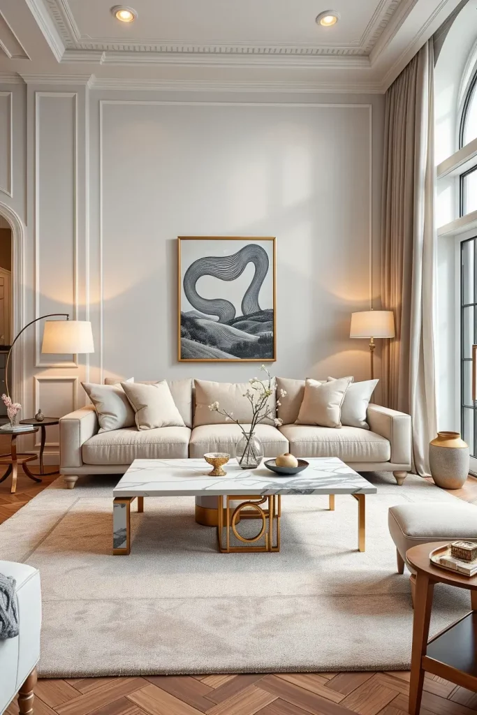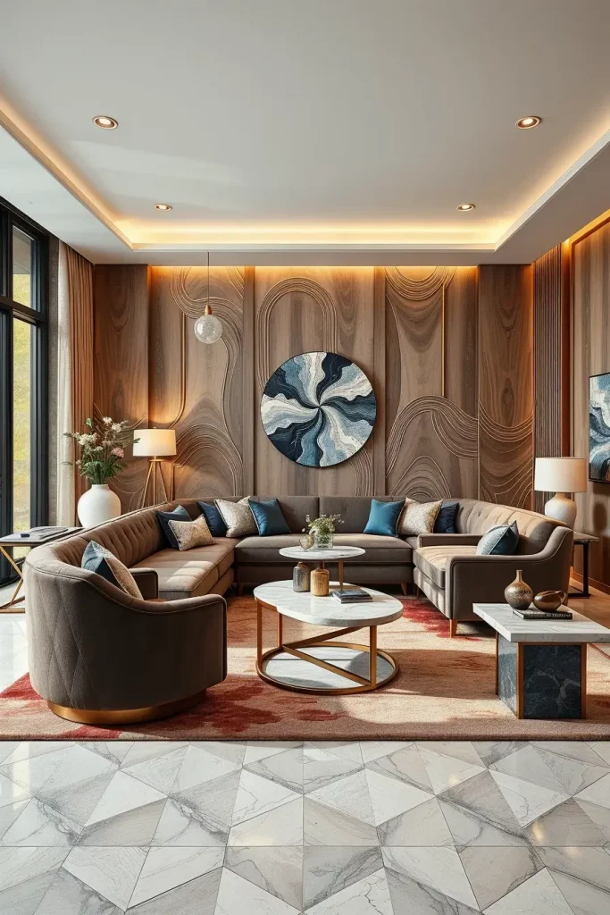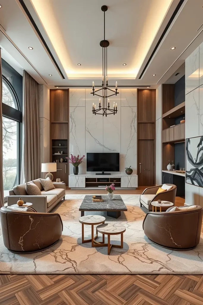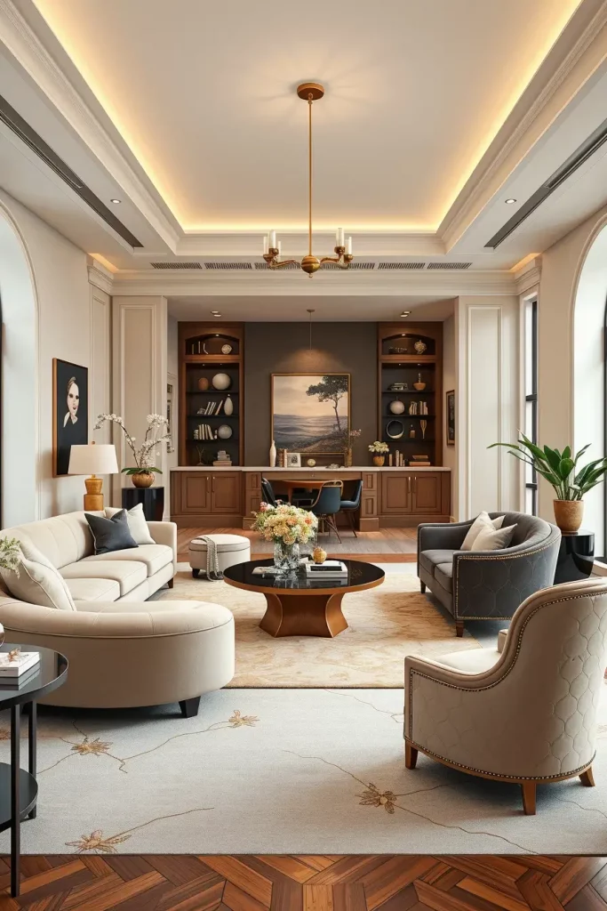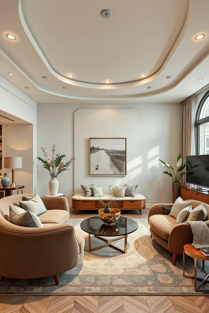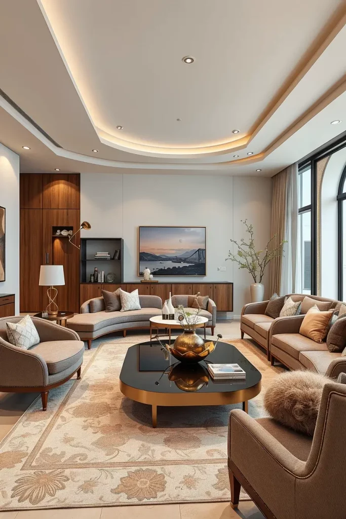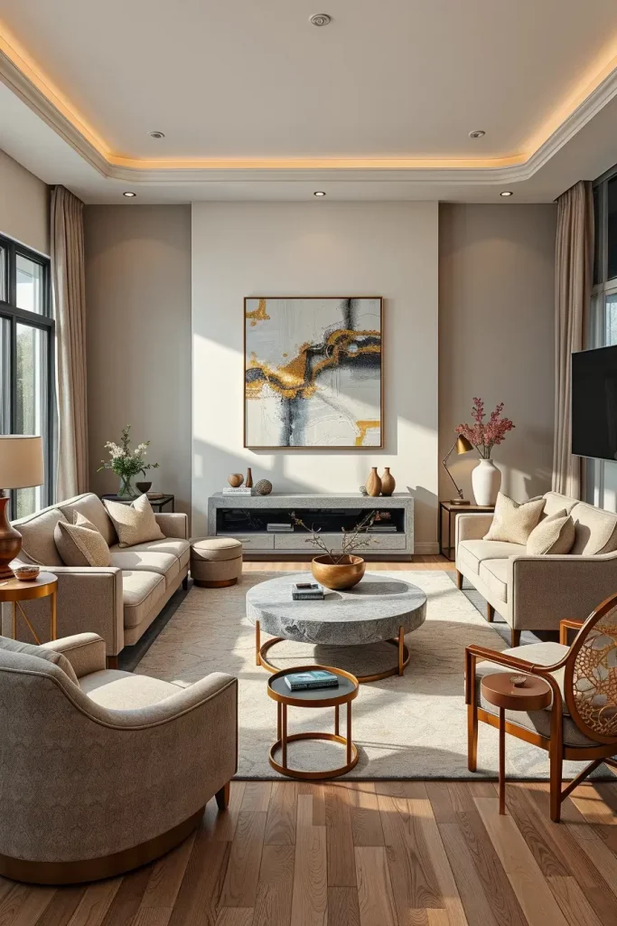 I frequently use sculptural furniture, low seating, natural stone touches and selective decoration to bring a harmonious appearance. Such traits as soft curves, smoked glass, brushed metals, and warm wood colors contribute to the elevation of the mood. Every element has its purpose, be it providing functionality, increasing comfort, or adding some visual interest. Such trends make the living room look and be comfortable.