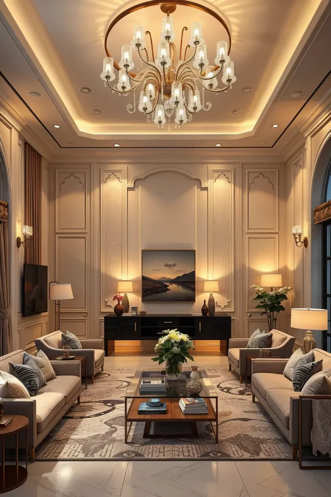 To make a classy living room, lighting is crucial, and in 2026, I want to believe that the defined focus to layered and customizable lighting will be even greater. To make the room appear so three-dimensional and warm, I always begin by using various light sources in various levels. The mix of ceiling lights, floor lights, wall sconces, and accent lights will create a dynamic quality and elegant atmosphere.