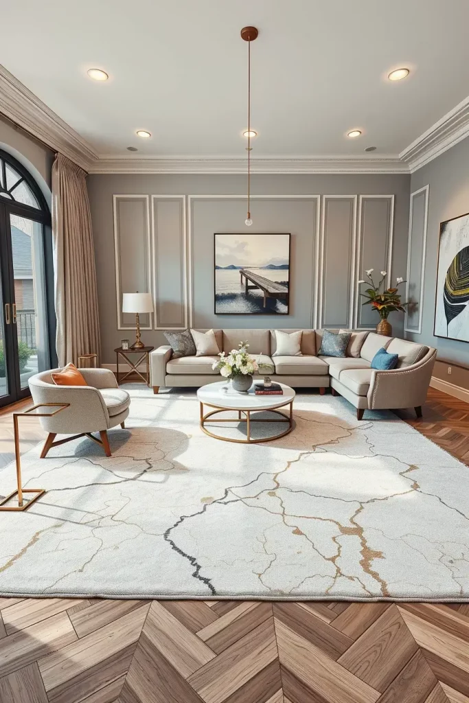 My selections typically consist of either a big-format floor rug that has slight texture or a striking geometrical pattern that I need depending on the requirements of that room. Wool, silk-blend and hand-tufted carpeting introduce elegance and plush comfort to the feet and the use of neutral or earthy colors contributes to maintaining visual balance. The rug should be matched to some other pieces of furniture like modern sectional, curvy chair, or marble coffee table so that everything will feel in one unity and will be stylish.