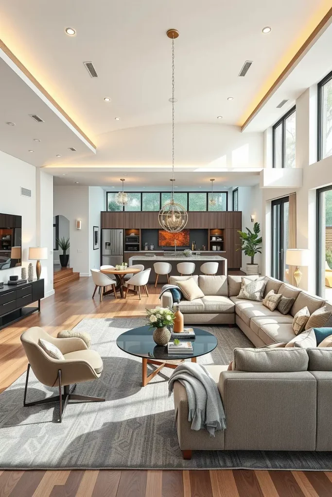In my experience, open-concept spaces have the advantage of having subtle design anchors that do not make them seem empty and chaotic. Top interior designers tend to emphasize the need to make use of rugs or architectural features or ceiling decorations to physically delineate areas. I consider this advice beneficial as it is sophisticated and still the layout remains open.