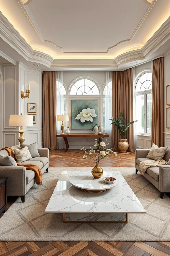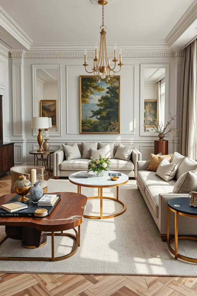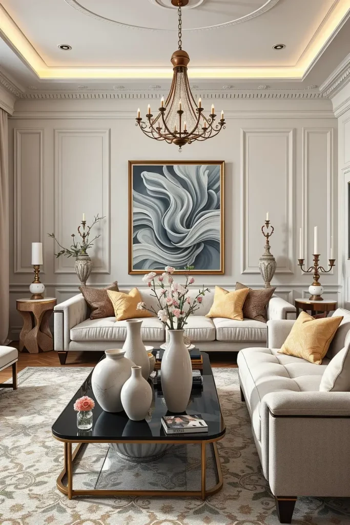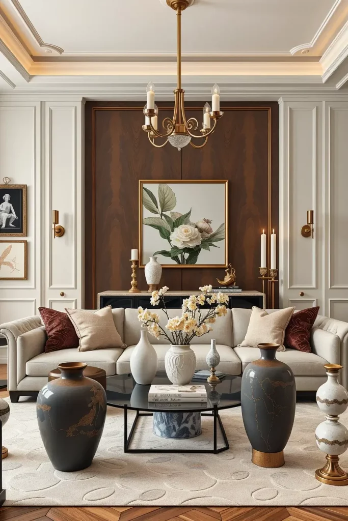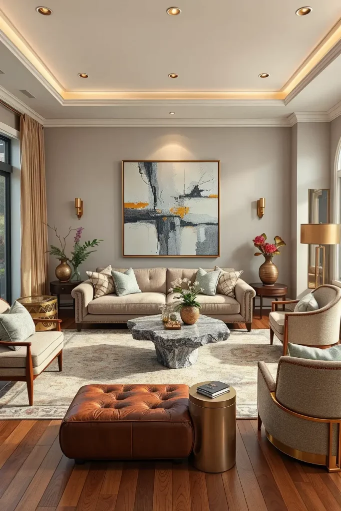 In my experience, the most luxurious living rooms do not follow the rule closely pursued in Architectural Digest: rooms that appear to be gathered, and not decorated. I adhere to this recommendation by incorporating a combination of textures and statement items without filling the space up with them. This will create a unique and elegant feel of the room.