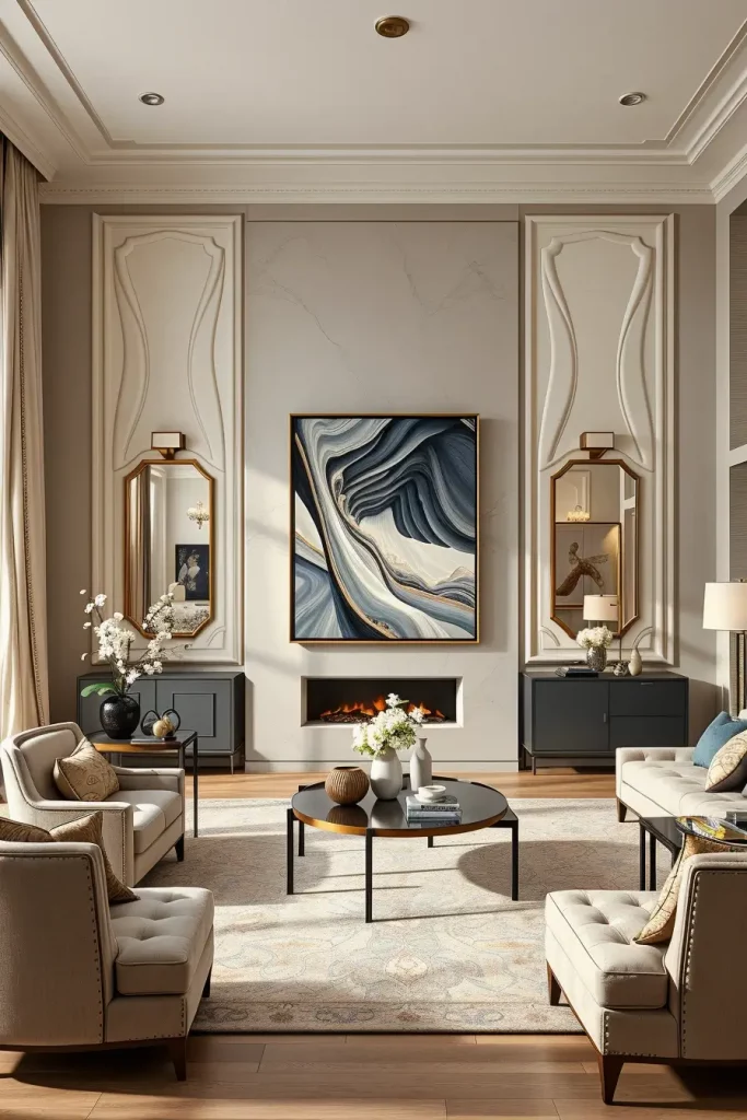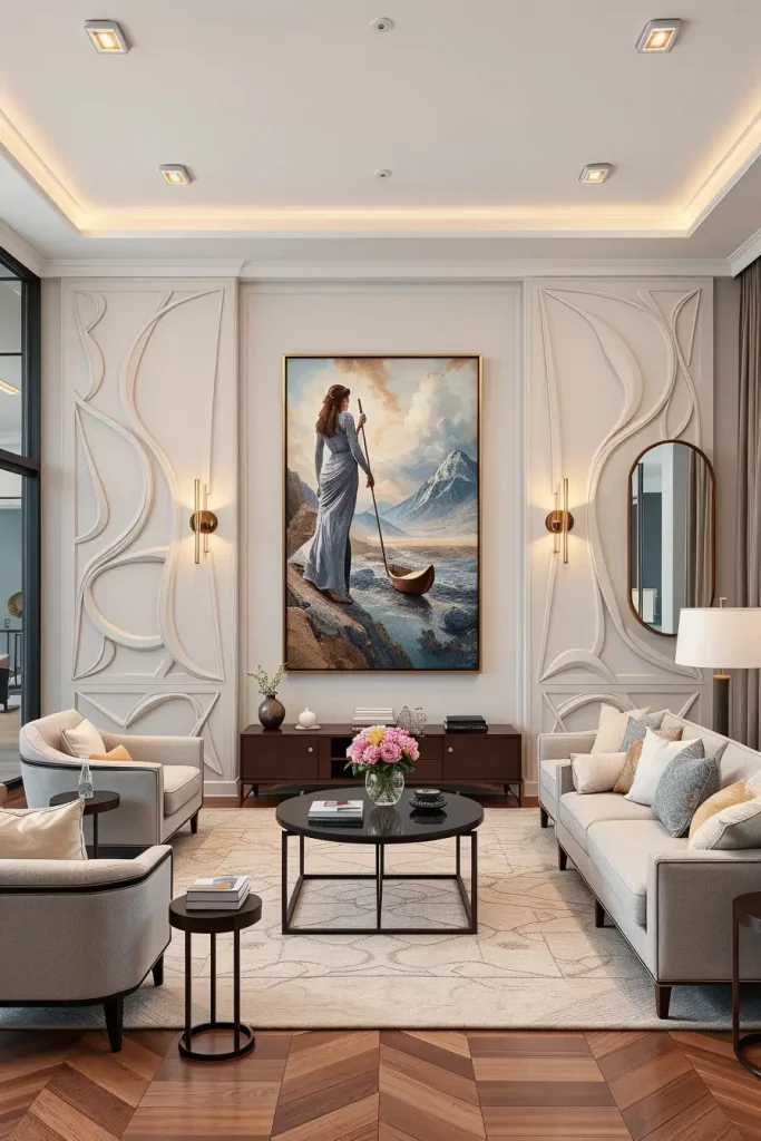 Wall decor has a lot to do with the construction of a classy living room and in 2026, accent is on being subtle but rich in artisticness. In creating wall decor, I give more attention to items that will add value to the general transformations of the room. Wall panels and sculptural, large-format art, architectural modeling, and texture to the surfaces, all deliver the touch of fineness to the upscale living room.