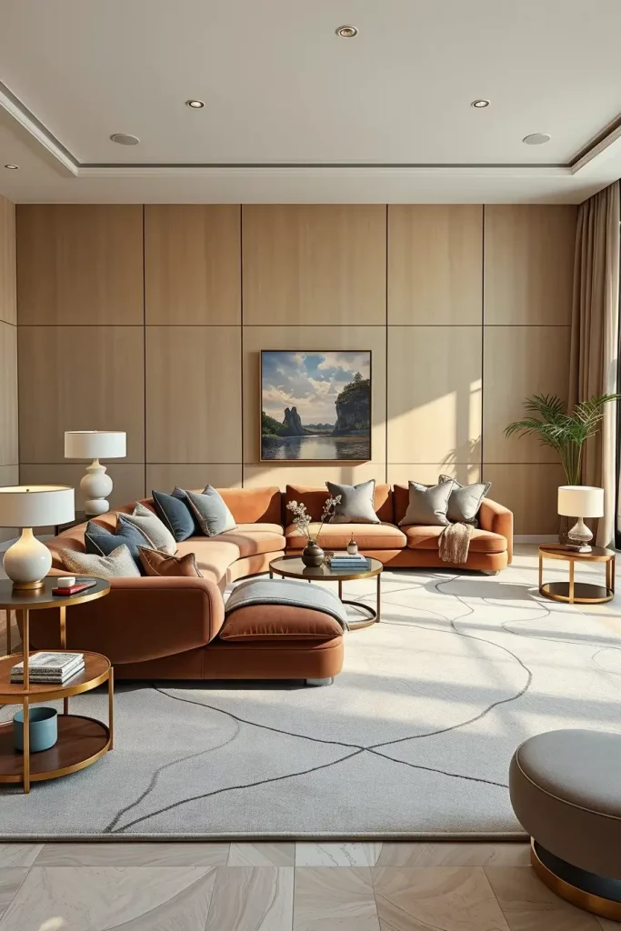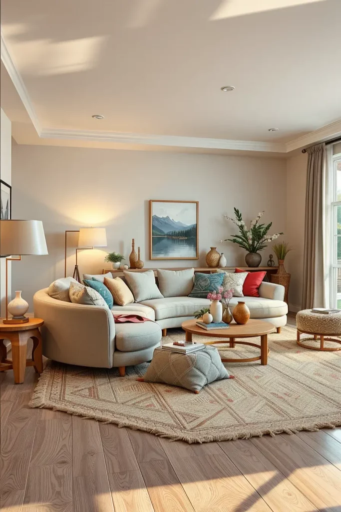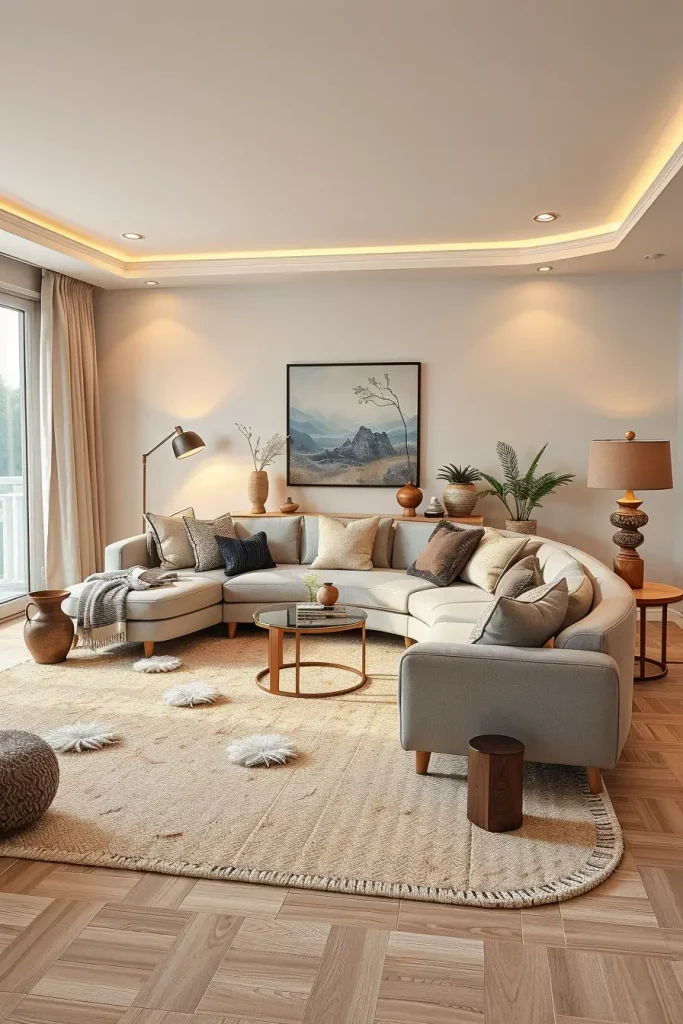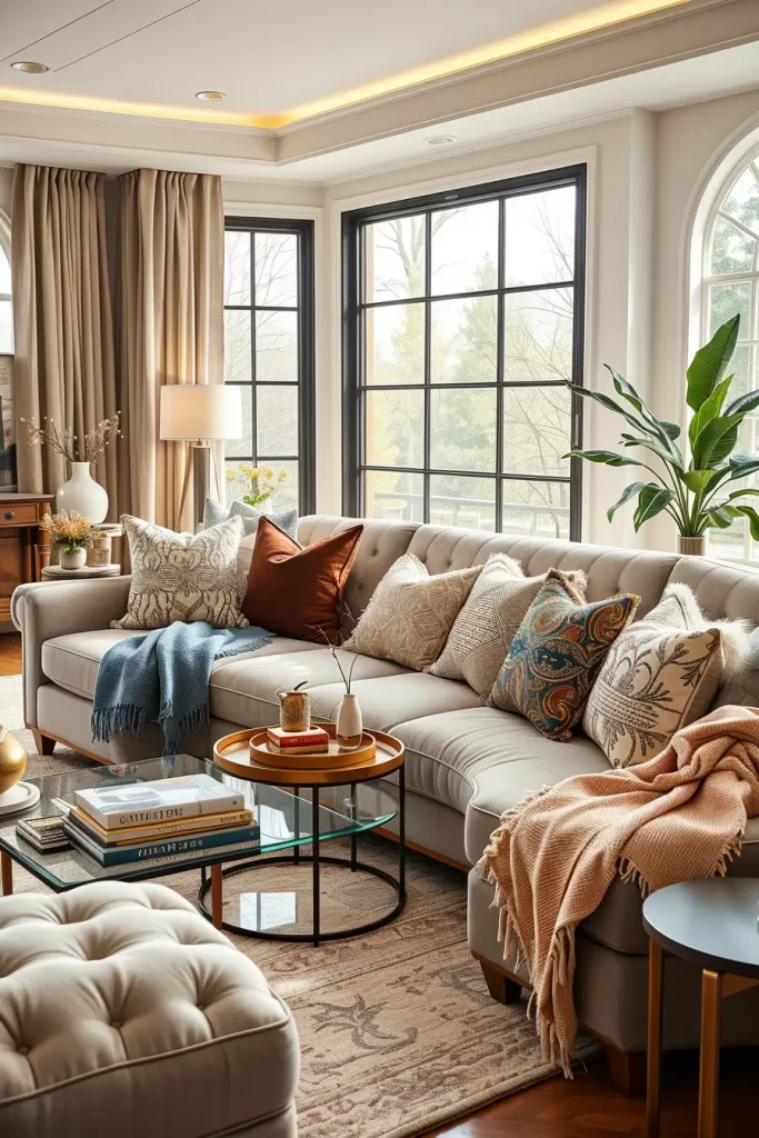 To do this, I will use furniture that has soft curves, properly made frames, and coverings, upholstered in multipurpose fabrics. The room can be changed into a high-end retreat with a neutral sofa combined with a marble coffee table and minimal lighting. Another thing I enjoy to do is to add statement items like a sculptural floor lamp or a single bold art work; something that will not overwhelm the space. The soft throws, structured pillows, and time-honored decor accents are used to make the look complete.