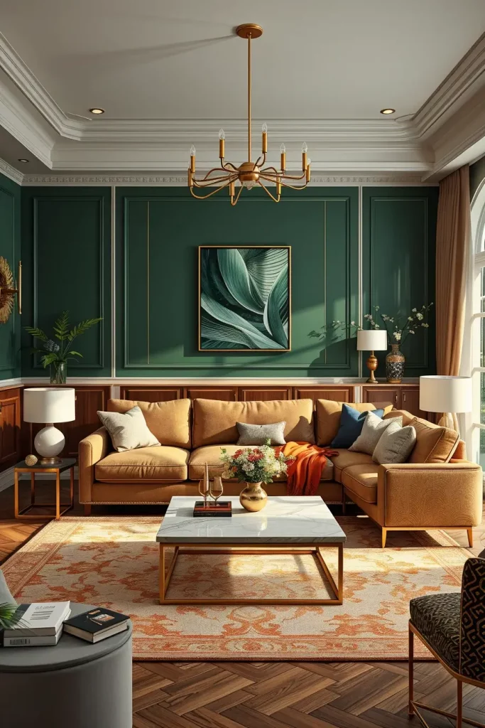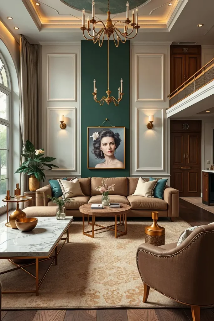 The choice of furniture and decor that I make is crucial in supporting the palette. The abundance of the color scheme is emphasized by velvet sofas in warm taupe, silk throw pillows in subdued gold, marble coffee table, and walnut cabinetry. Brushed brass or blackened steel composes of small metallic accents are used to accomplish visual harmony. These items are combined to ensure a consistent flow, as well as to support the elegant look.