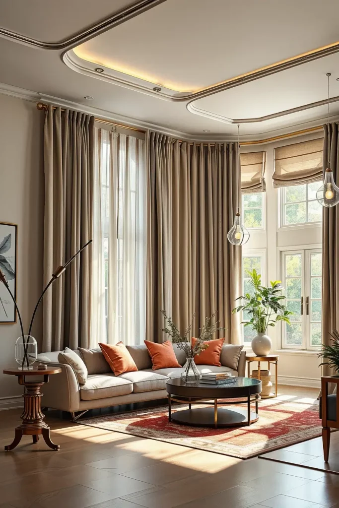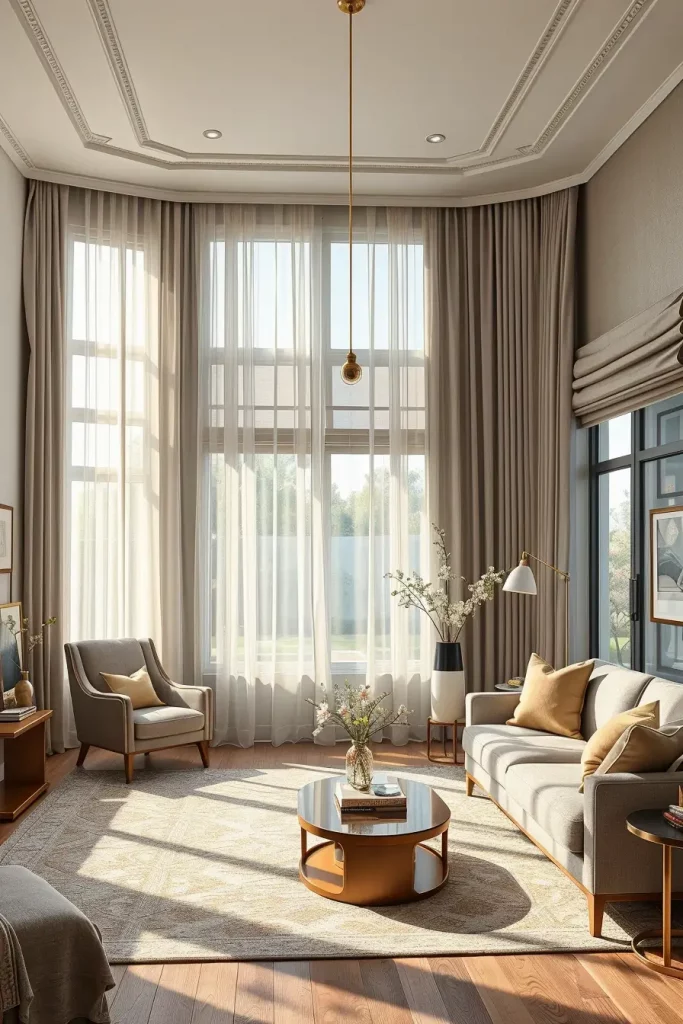When designing window coverings in a fancy living room in 2026, I will consider the effect of the natural light on the room during the day. Virtue and grace begin with choosing the fabrics which do not reflect sunlight, but do not keep it completely out. I will usually select multiple-layered treatments where I have a clear base overlaid with customized drapery panels to maintain a bright and sophisticated atmosphere.
