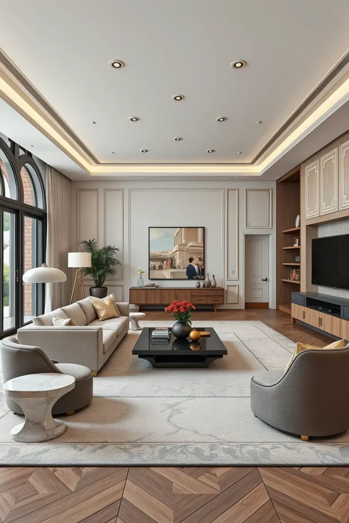 Incorporating the elements of modern and classic interior, I want to use equilibrium and harmony in the visuals. A luxurious family room in 2026 will be a blend of the two times with its clean modern lines and traditional classical features. This will incorporate the element of depth and personality without making the space too stale and classy.