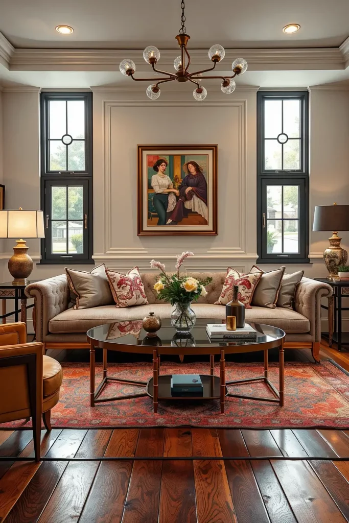 The kind of furniture adopted is often contemporary sofas and traditional coffee tables or smooth lighting and traditional architecture such as molding or framed art. I prefer to combine modern metals with warm wood or minimalist layout with traditional fabrics like herringbone or linen. It is all a matter of planned opposition–not accident.