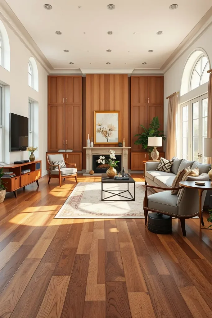Some of the materials that I frequently suggest are engineered hardwood, natural oak, luxury stone tiles or high-end laminate which replicates wood with high levels of realism. I will always put area rugs to make the room warmer and more comfortable, and I make sure that area rugs do not conflict with the palette and layout of the furniture. Zoning in an open-plan space is also done with the help of the use of rugs to create the visual structure.
