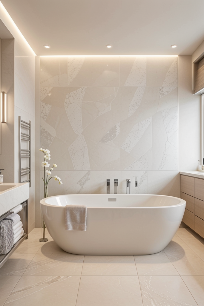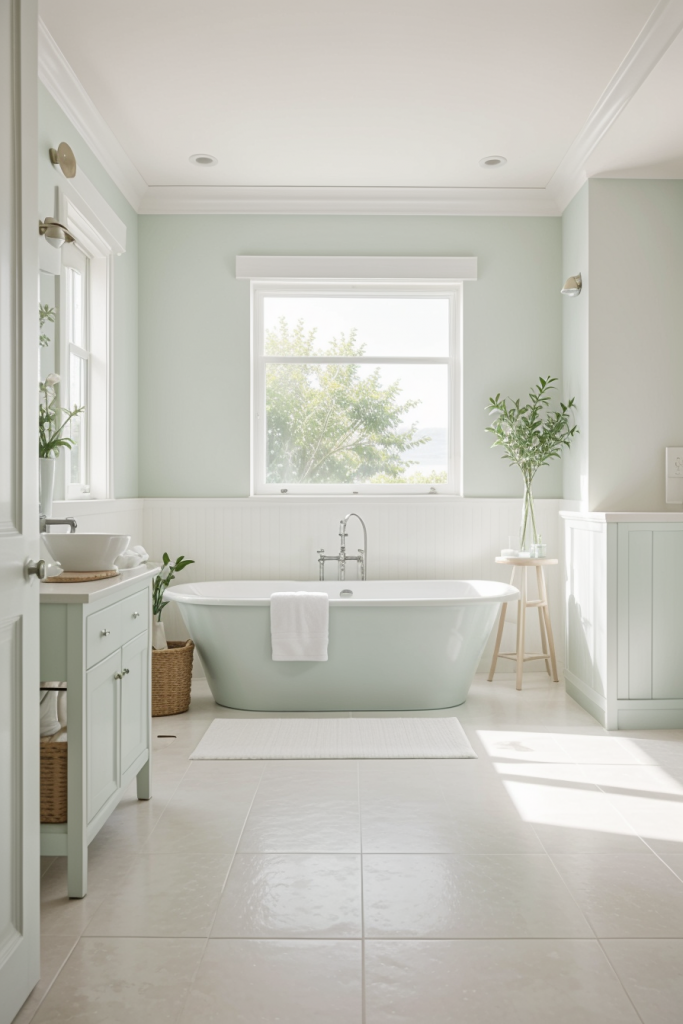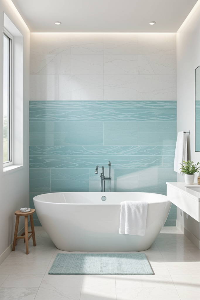 Choosing the right shade of colors for water features in a coastal bathroom setting is crucial and enables the portrayal of the oceanic vibe fully. Light blues and greens along with beige shades evokes memories of the coastal scenery. These balanced colors fit well with modern designs as well as traditional ones, making the room welcoming and pleasant.