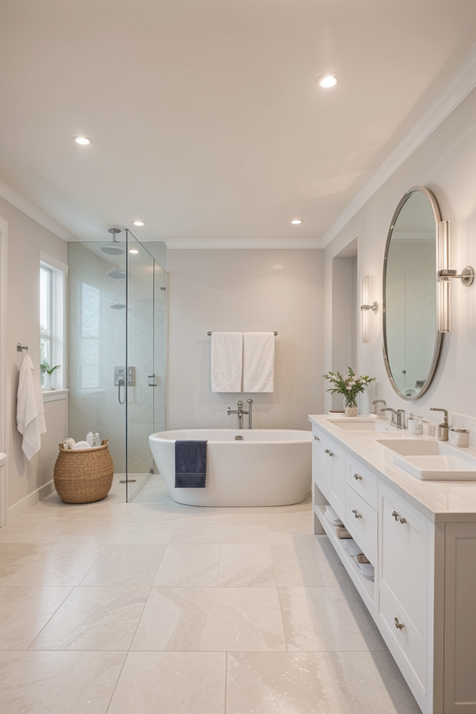 To accomplish peace and order in a coastal bathroom, balance with self-leveling flooring must be achieved in the bathroom. This not only compliments other modern design features, but also enhances the soothing nature synonymous with ocean waters. As a result, every feature—from functional designer nautical decor to the decor itself—is blended into an effortless space where every single element is intergated.