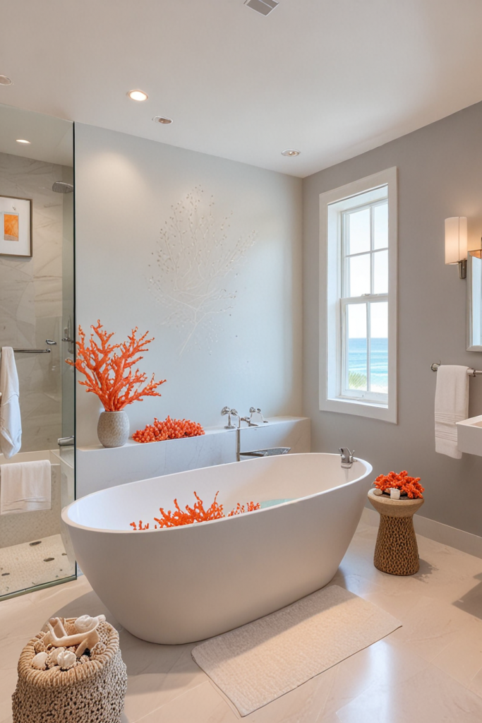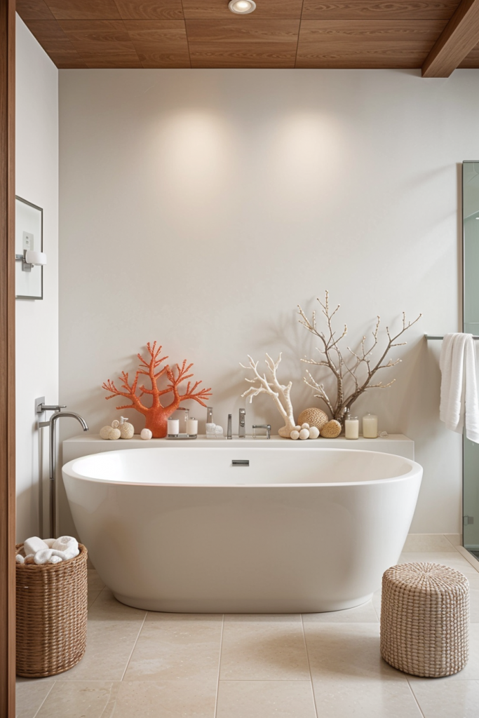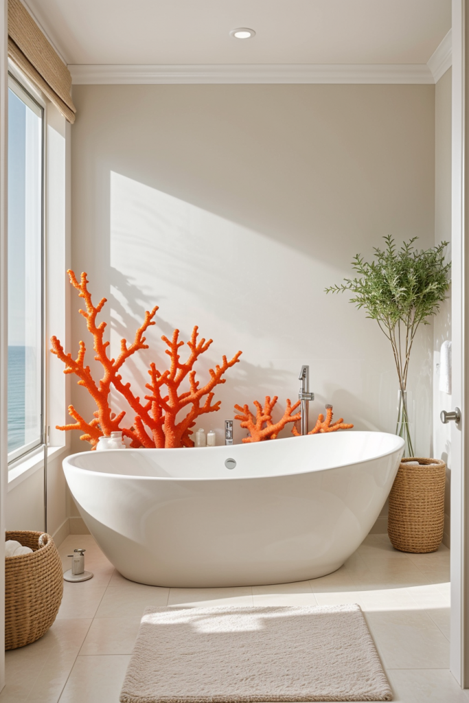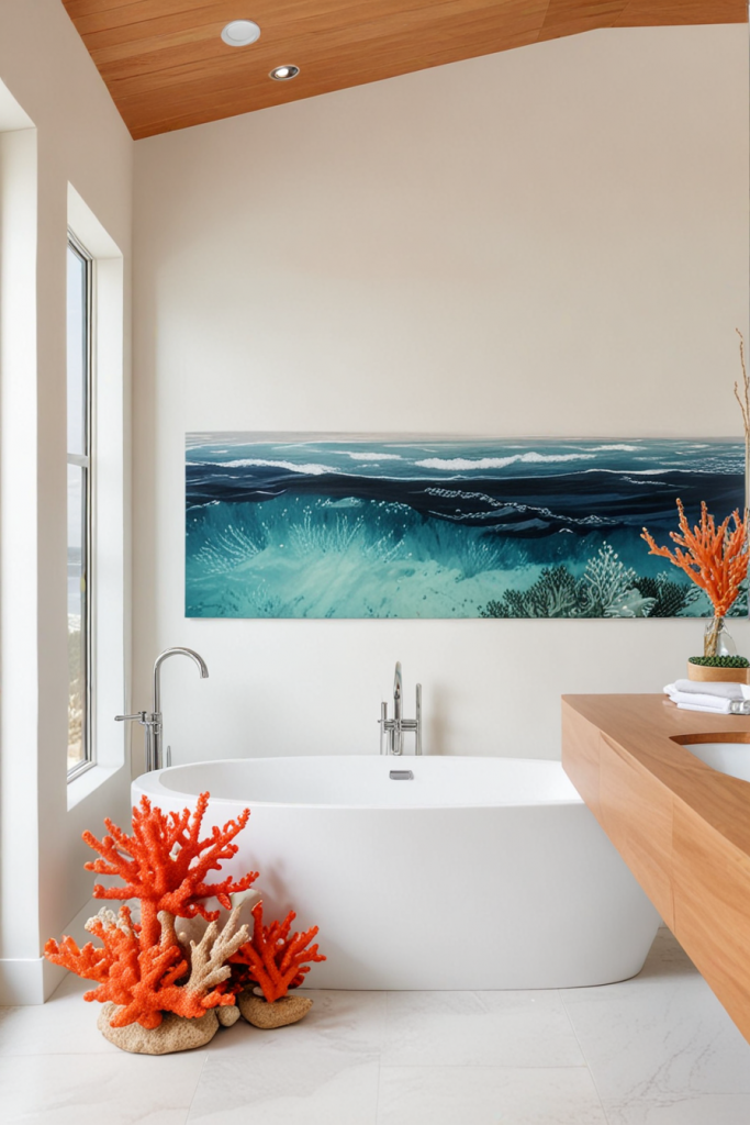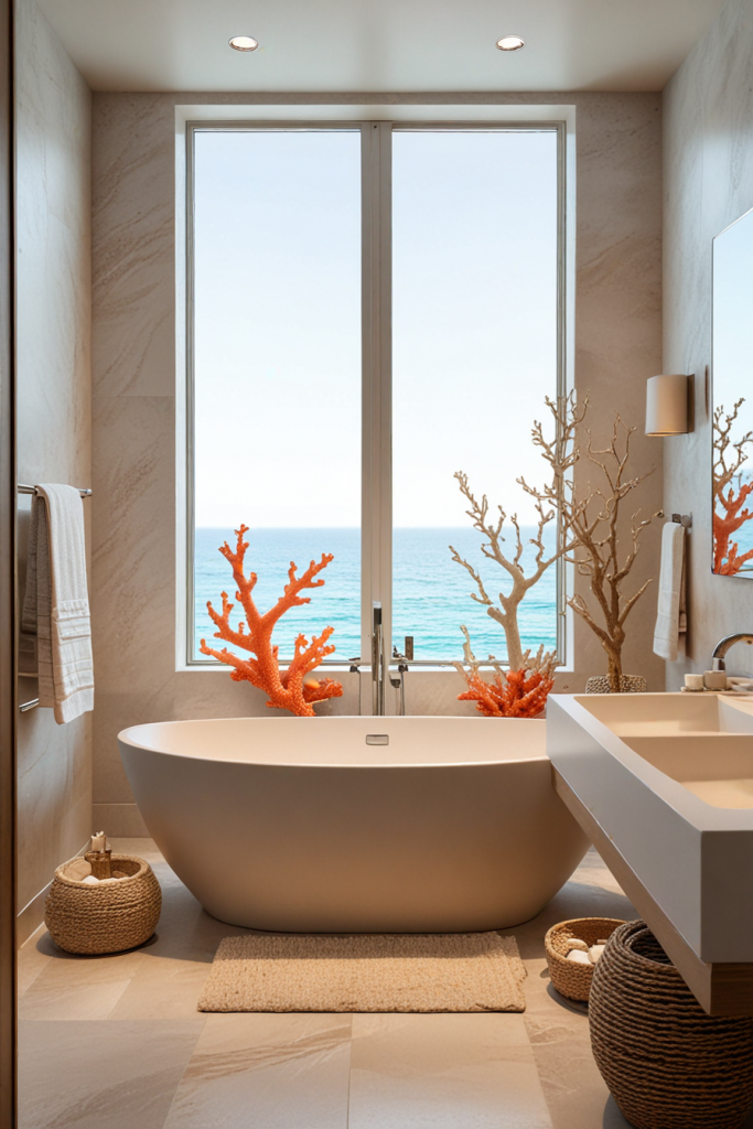 The sea coral arrangements bring additional splashes of color including the most vibrant hues and rich tones which enliven the coastal bathroom’s dull palette. These natural accents add additional layers while accentuating the textures making the coral the center of attention reflecting the mighty ocean. The corals with their intricately crafted forms are nature’s expression, teeming with movement which ensures that every detail is carefully designed to preserve the beauty of the coast.