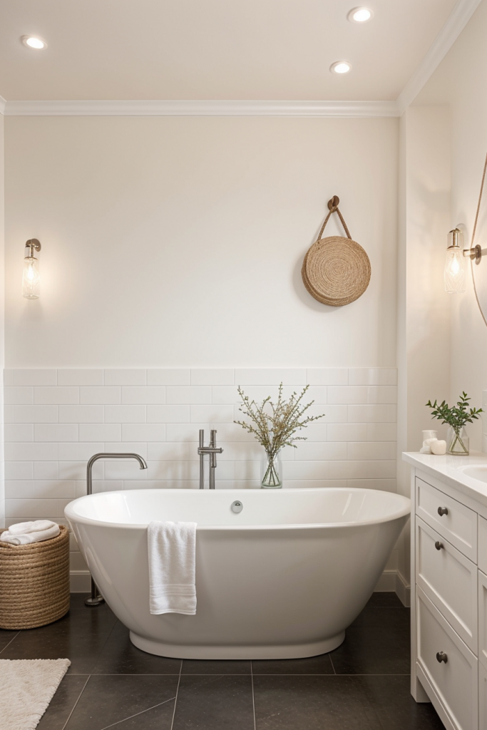 Embellishing with ropes infuses genuine nautical flair that enhances the beauty of coastal bathrooms. Rope detailing on fixtures and furniture help capture the shapes of the sea, giving them depth and texture. Alongside minimalist design concepts, these details create a cozy atmosphere enhanced with warm lighting that is balanced between tradition and modernity.