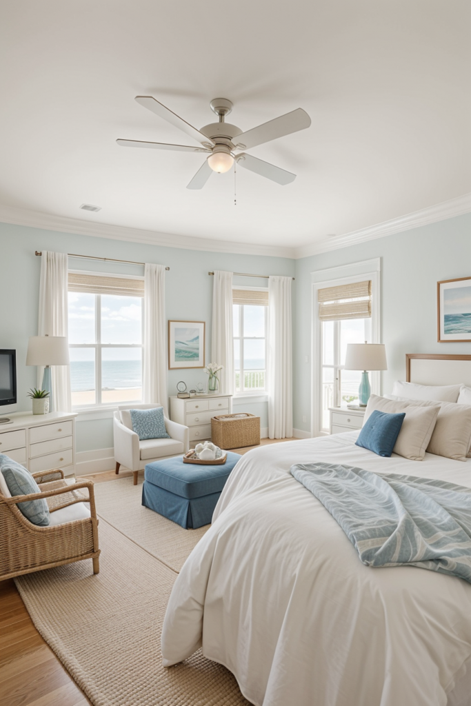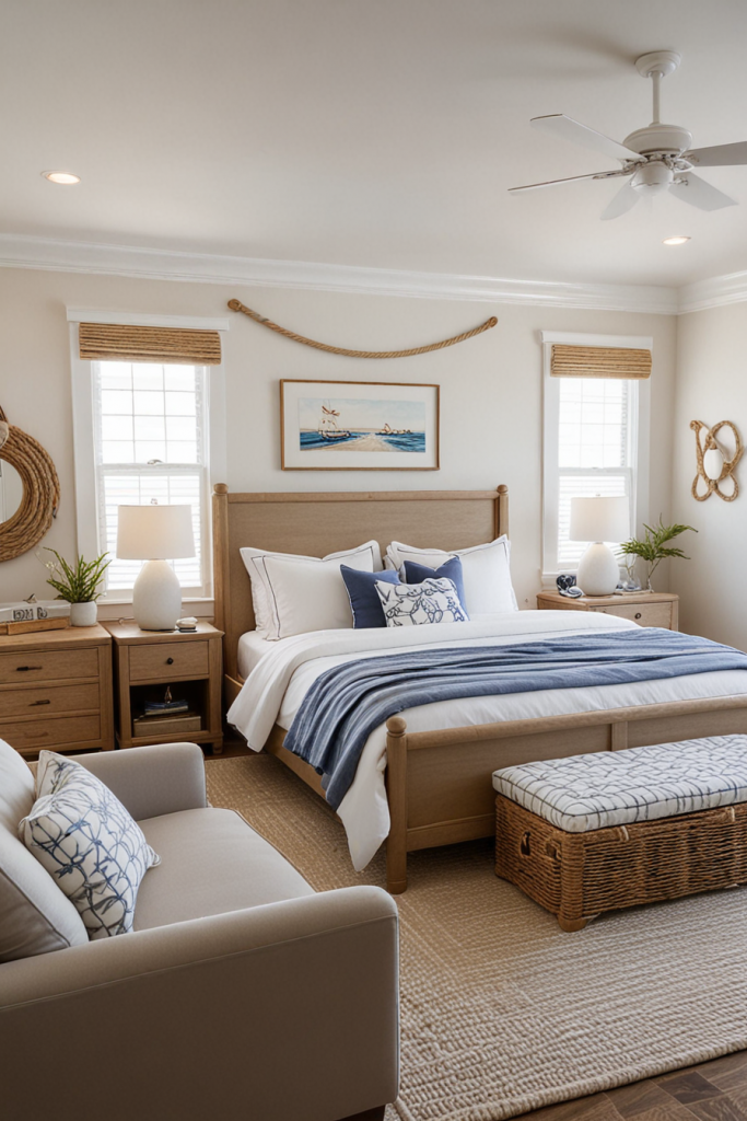 To sum up, blending coastal bedroom design with nautical decor and modern design principles creates a calm and elegant sanctuary. Please share your thoughts and experiences—comment below and tell us how you imagine the ideal coastal getaway.