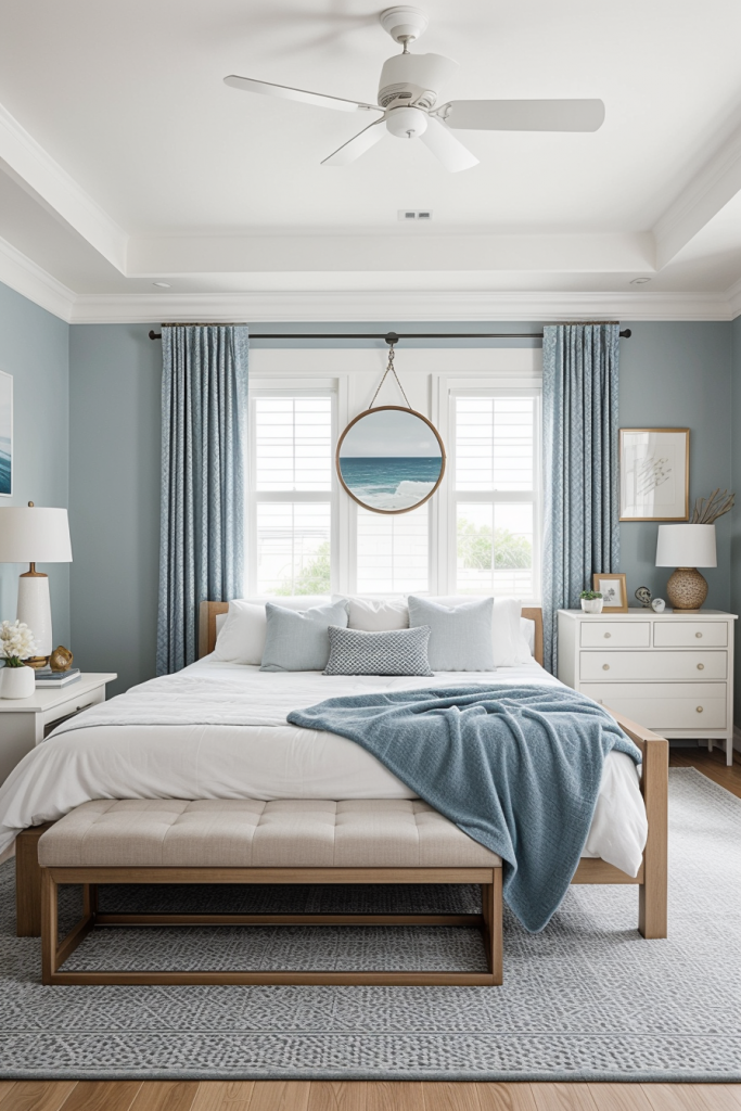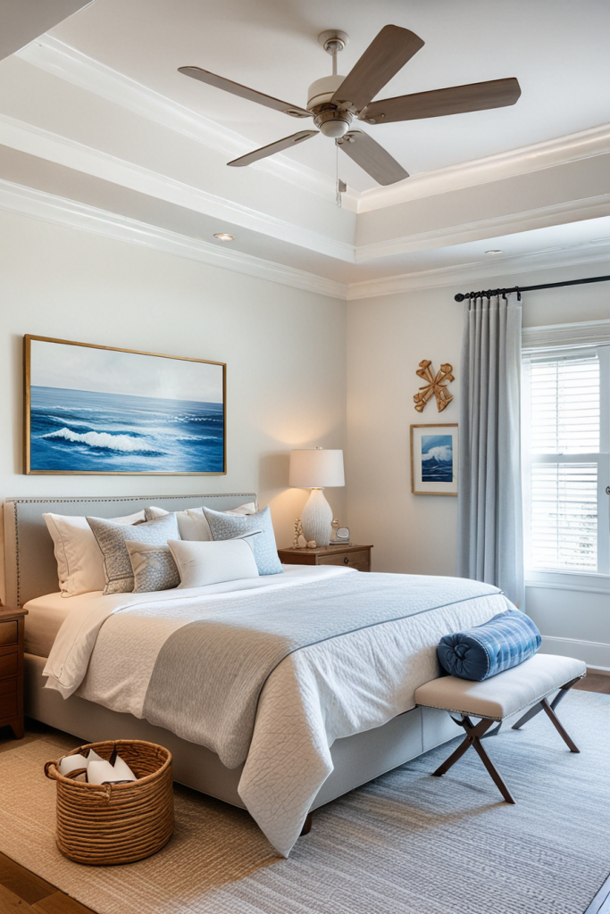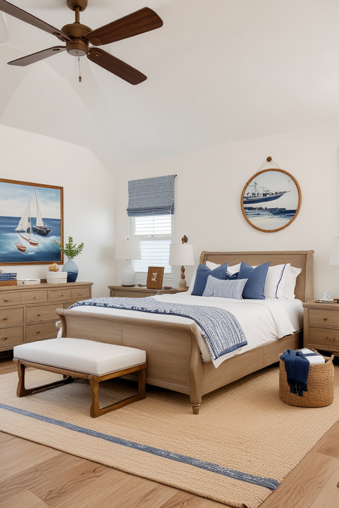 In order to create a peaceful maritime atmosphere, balance and calm that reminds one of a tranquil seaside getaway is needed. Gentle colors, simplistic designs, and natural materials turn coastal bedrooms into sanctuaries of relaxation. Choosing nautical decor with care makes sure that every piece works with the rest of the room.