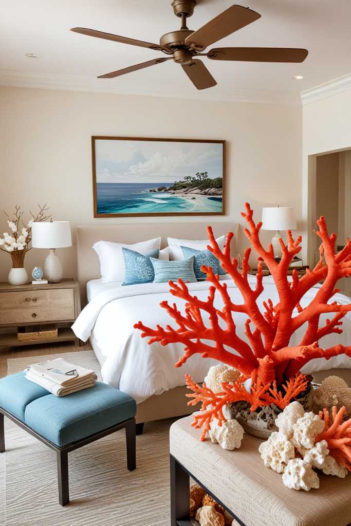 Adding sea coral arrangements to your home decor brings nature’s art and a splash of color while enlivening your interior. These pieces reflect the dynamic essence of the ocean and act as natural accent pieces that invigorate the space. With modern design principles, sea coral arrangements transform into charming yet sophisticated pieces for any coastal bedroom.